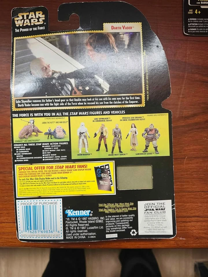 I'm offering a brand new, unopened 1997 Kenner Star Wars 'The Power of the Force' Darth Vader action figure, complete with a removable helmet and lightsaber. This vintage collectible features a freeze-frame action slide. This is a rare find for any Star Wars enthusiast! Please note that while the listing is active, the item is still available for purchase, ready to join your collection!