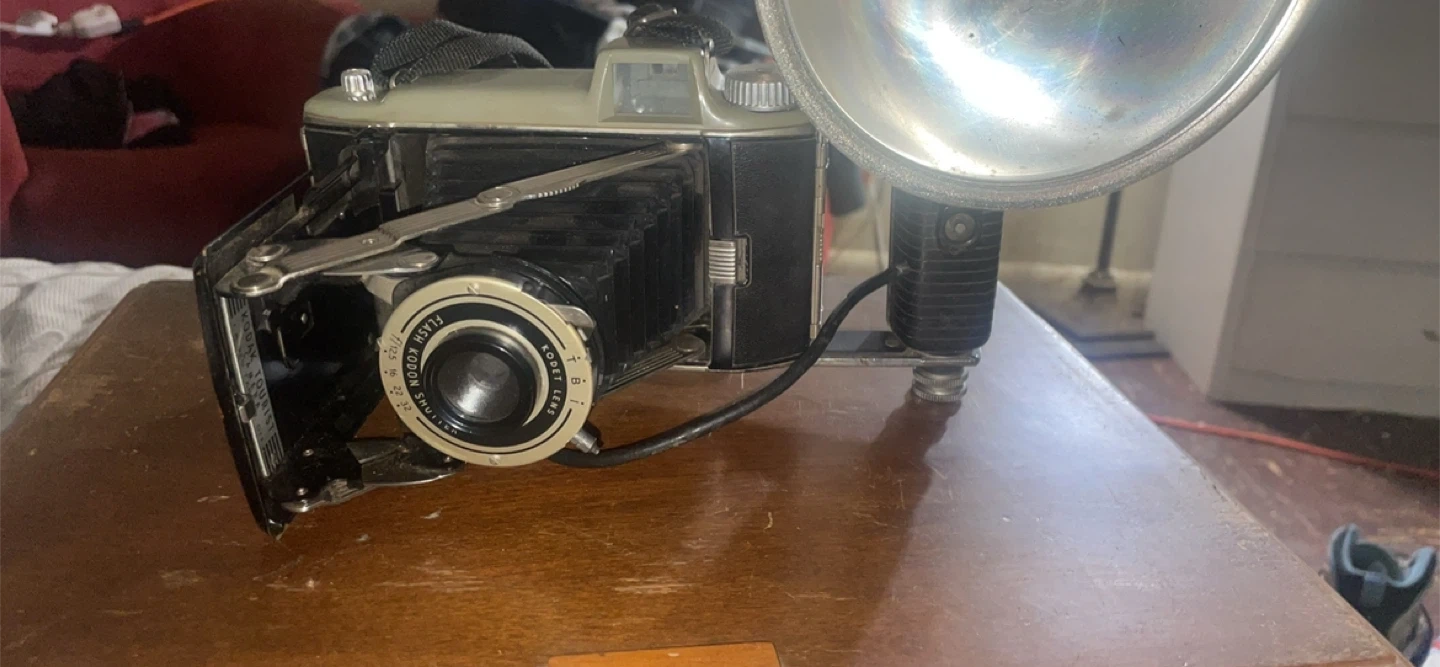 Selling a vintage Kodak Flash Kodon camera. It has a unique design and would be a great addition to a collection or as a decorative piece. It appears to be in good condition for its age