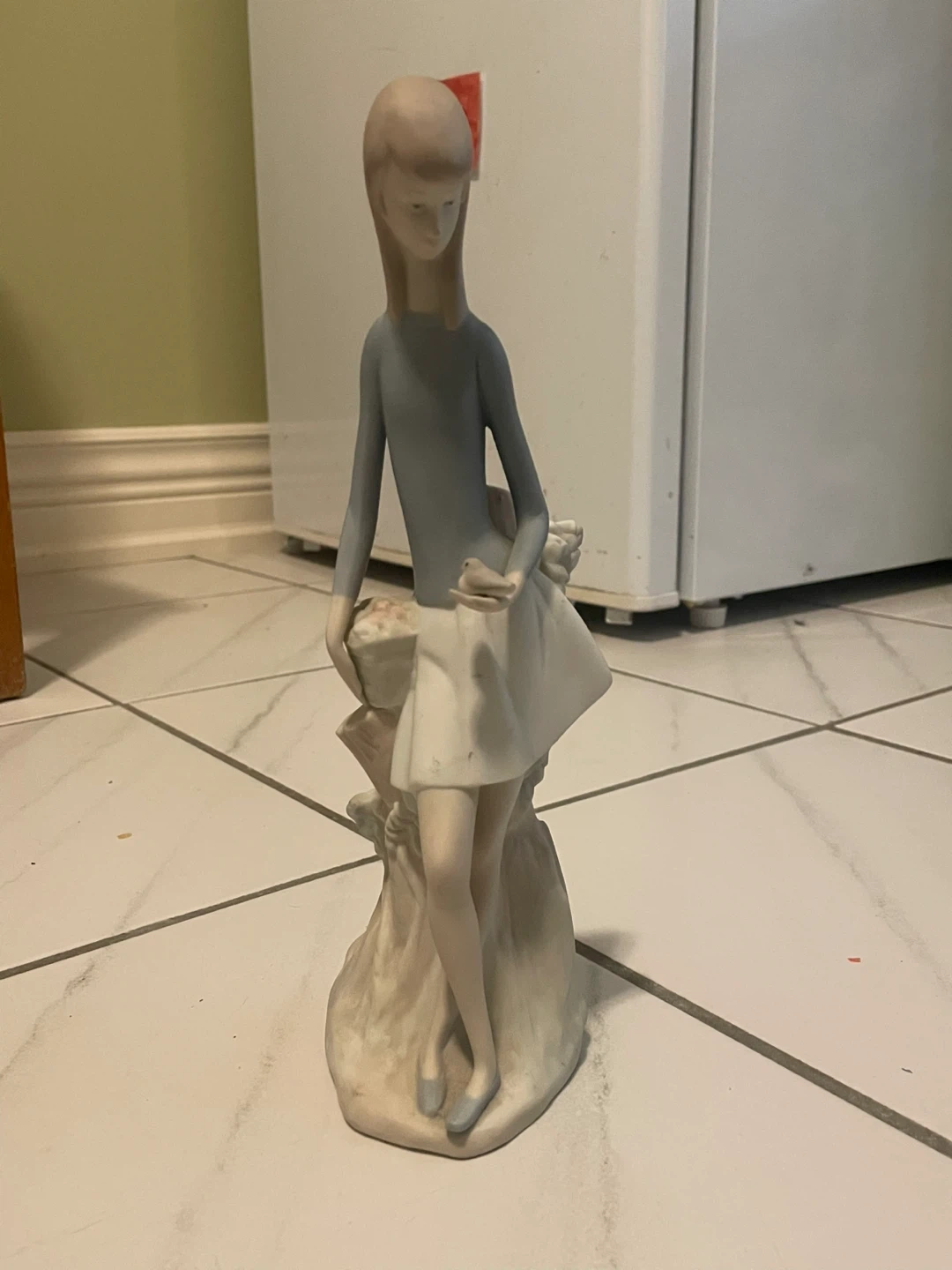 Selling Rare Lladro Figure “Girl with bird in hand” collectable Good condition, some scuffs Potential to make some money on Ebay if you find the right buyer 10-1/2” Price negotiable