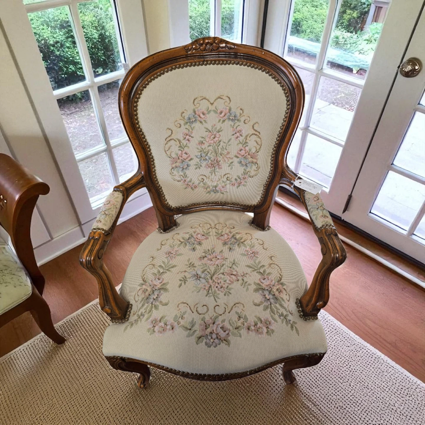 Immerse yourself in the elegance of the Louis XV era with this exquisite tapestry-carved armchair. A genuine antique, it boasts intricate carvings that capture the essence of French classical design. The rich tapestry upholstery fabric wraps around the chair, offering both comfort and a luxurious aesthetic. This armchair is not just a piece of furniture but a slice of history, perfect for collectors and those who appreciate the beauty of antique craftsmanship. It stands as a statement piece, embodying the sophistication and grandeur of the time. Add a touch of old-world charm to your space with this timeless Louis XV treasure.