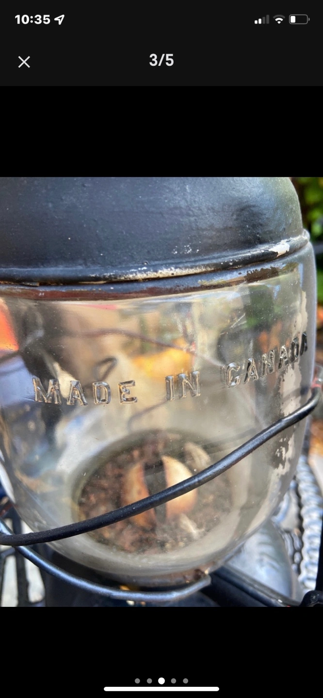Selling a vintage lantern that was made in Canada. It has a glass enclosure and a black metal frame. There are signs of wear and tear, but it's still a cool piece! Perfect for Halloween display or garden If AD is up it’s available