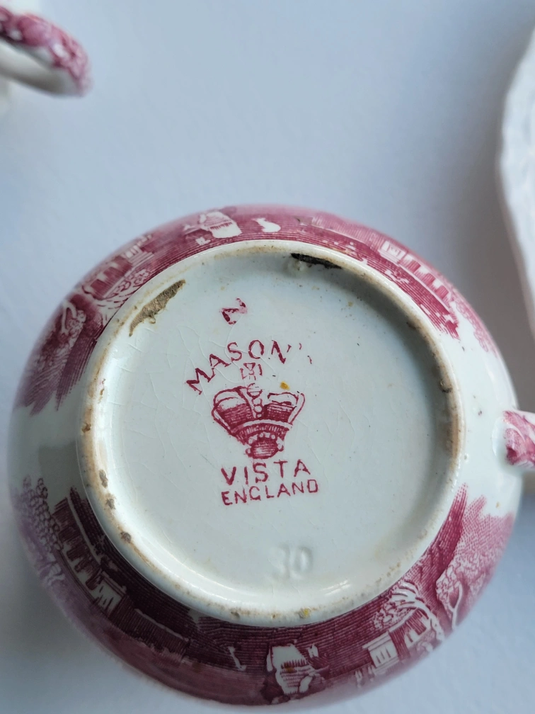 Masons Vista Ironstone Replacement China! 1 Teacup $15 ea 1 Teacup with Saucer $25 1 Dinner Plate 10.5" $30 1 Plate 8" $25 1 Plate 7" $20 Creamer with Saucer $35 8 pieces In great condition No chips Add to your set or start collecting. Fennell and Upper gage Hamilton Please see my many other listings