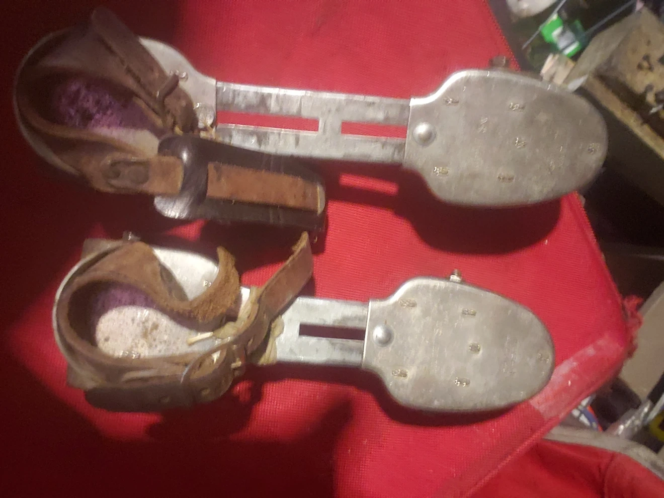 Selling a pair of vintage roller skates. They feature metal blades and leather straps. Great for display or restoration!