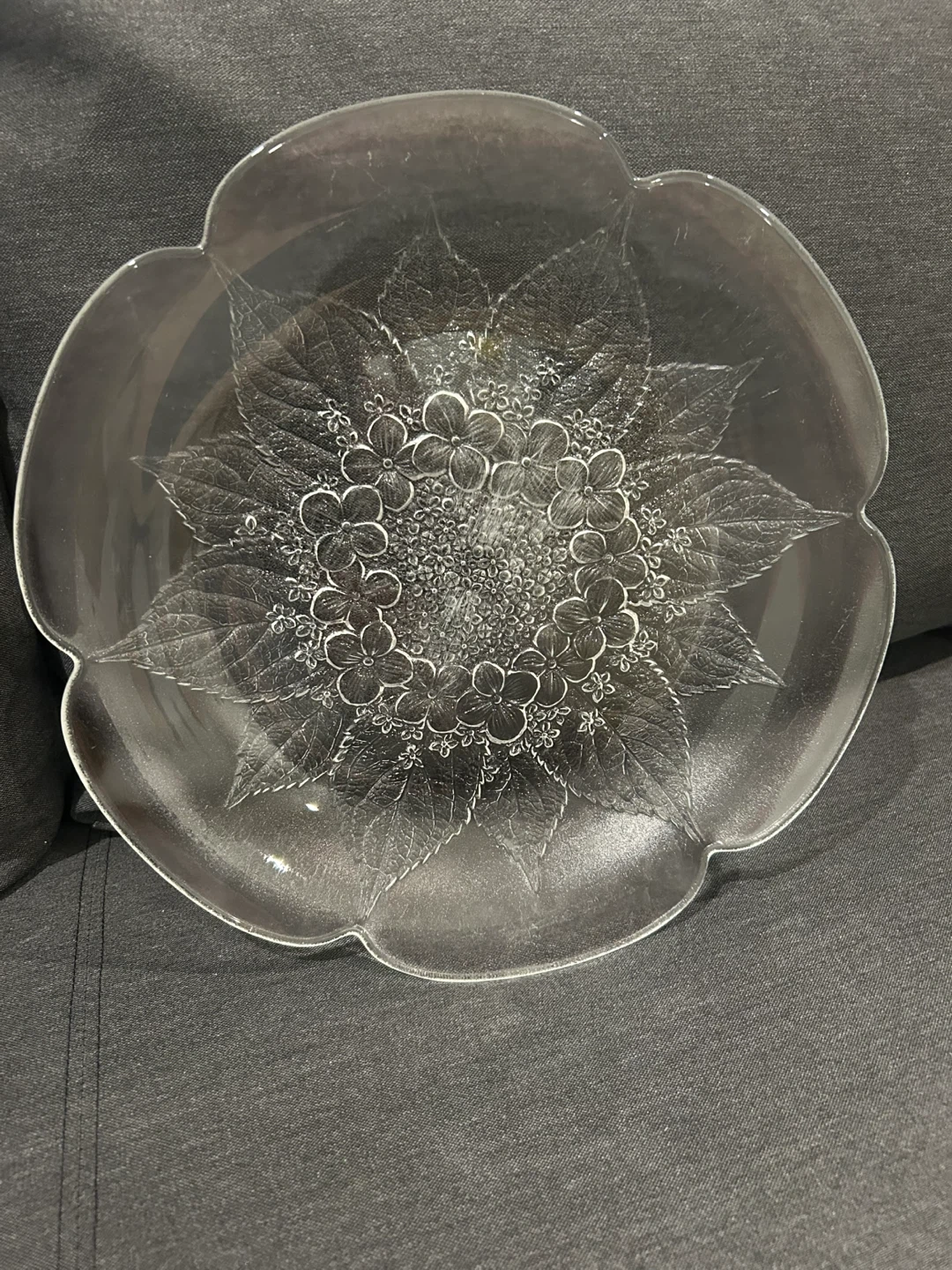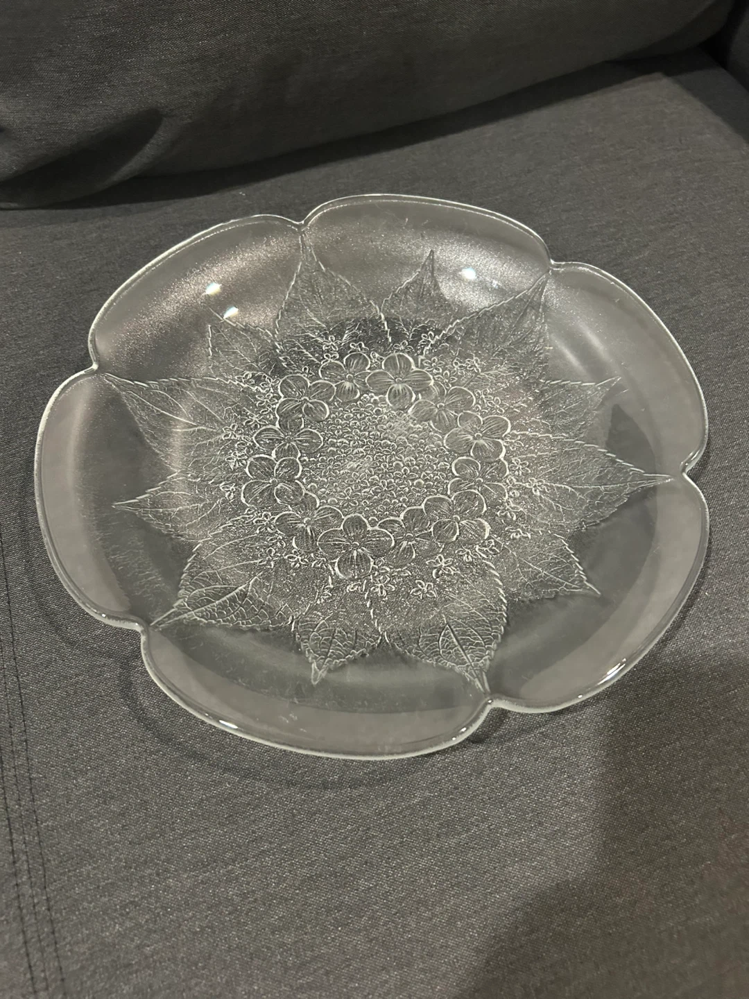 12” Vintage Mikasa Hoya raised leaf and flower pattern crystal platter. $5//pickup Southeast Vancouver.