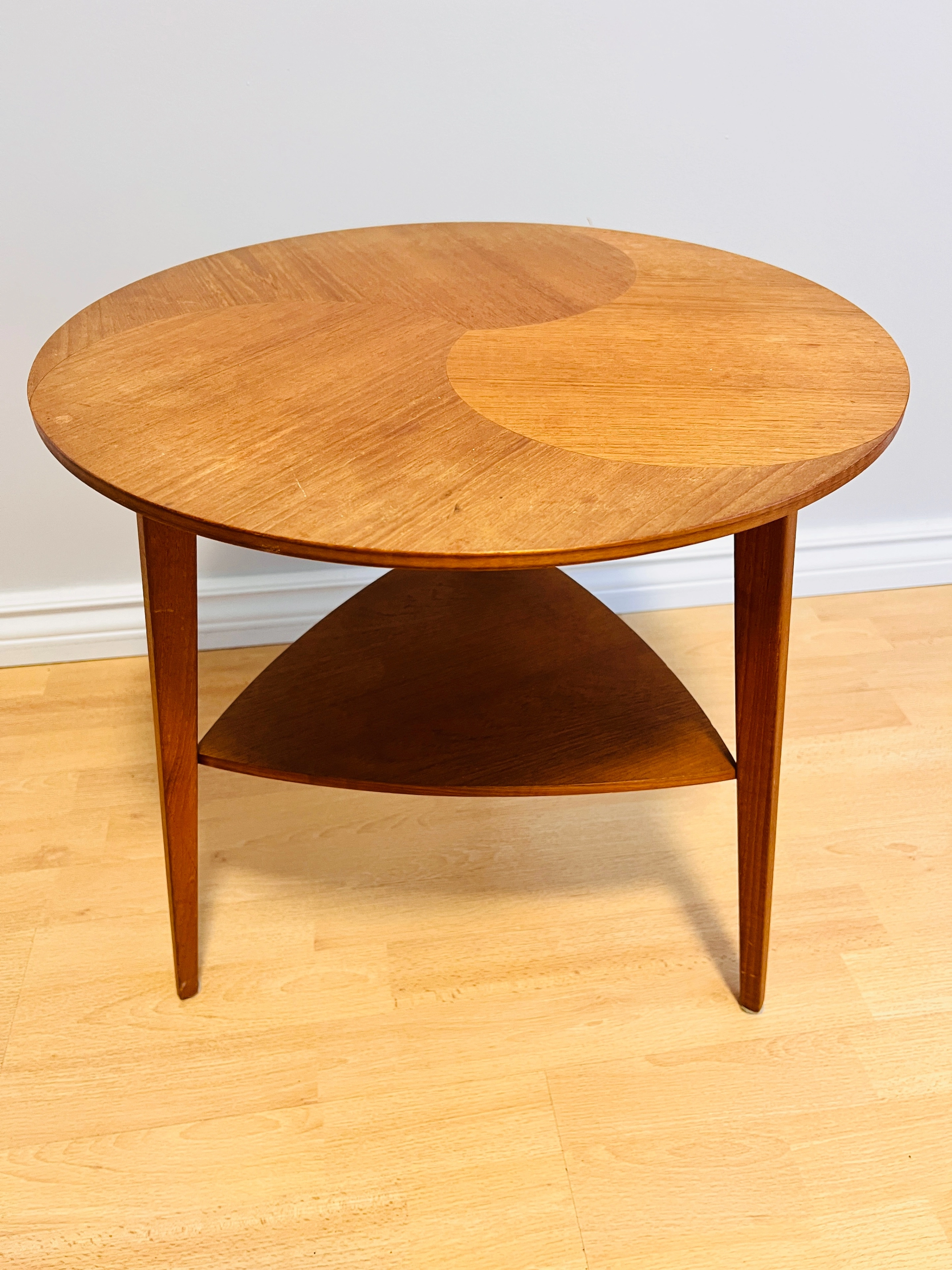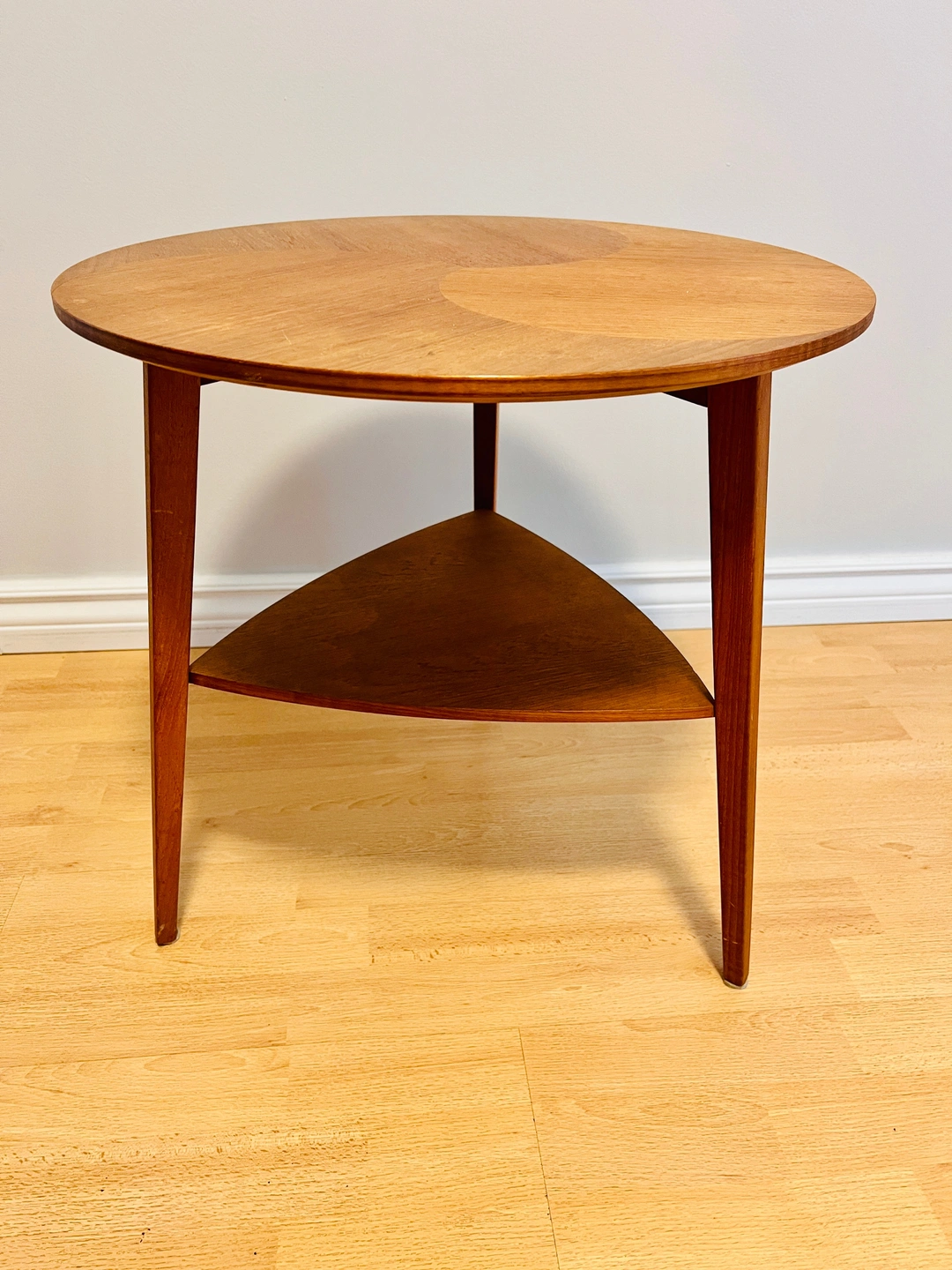 Beautiful vintage-style round wood side table in great condition. Features: Unique two-tone wood grain top pattern Solid wood construction Triangular lower shelf for extra storage or dรฉcor display Sturdy tapered legs with clean mid-century lines Perfect as an accent table, living room end table, or bedside stand. ๐ Approx. Dimensions: Diameter: ~20โ Height: ~20โ ๐ฐ Asking: $75 ๐ Pickup: Markham