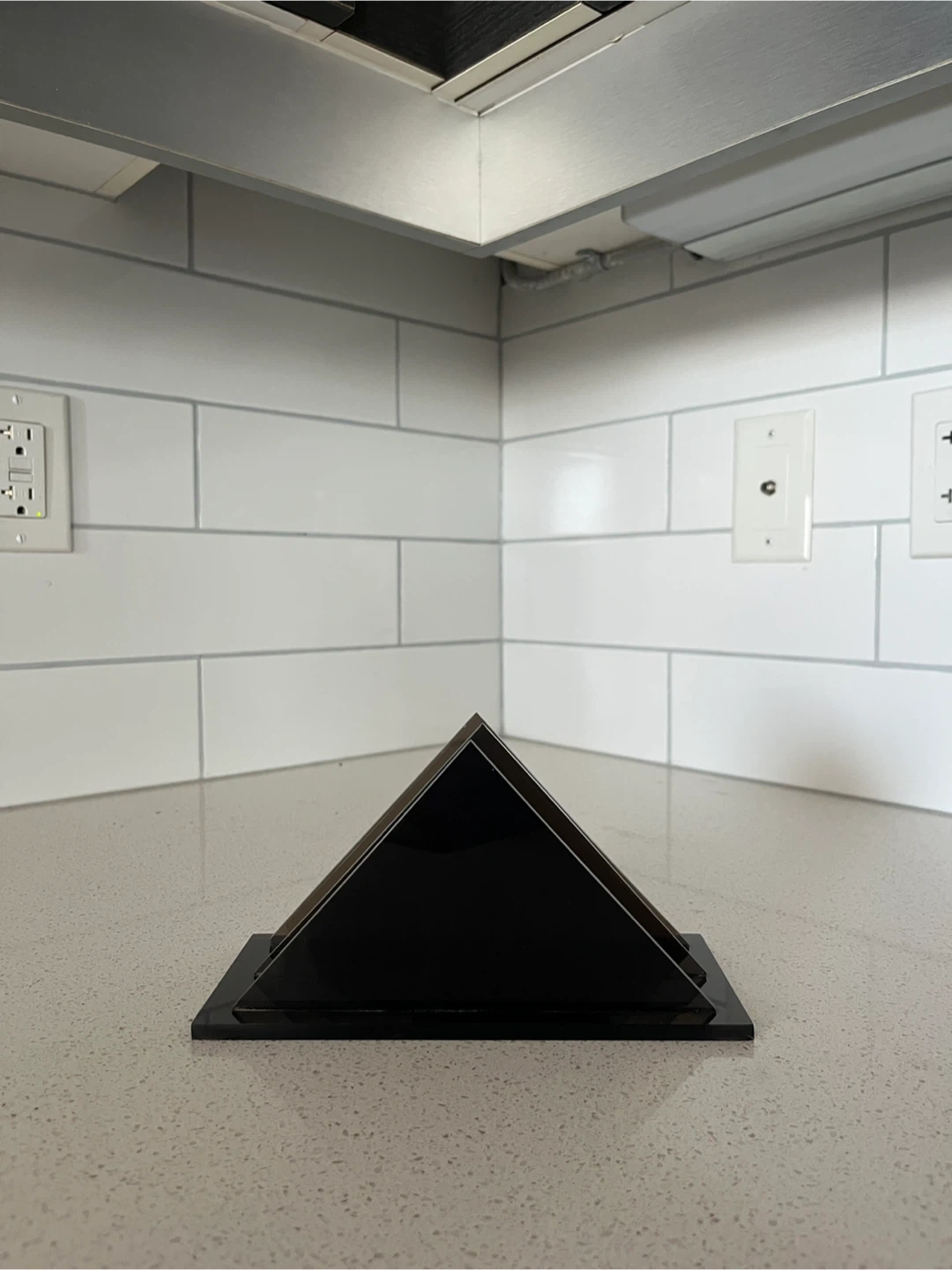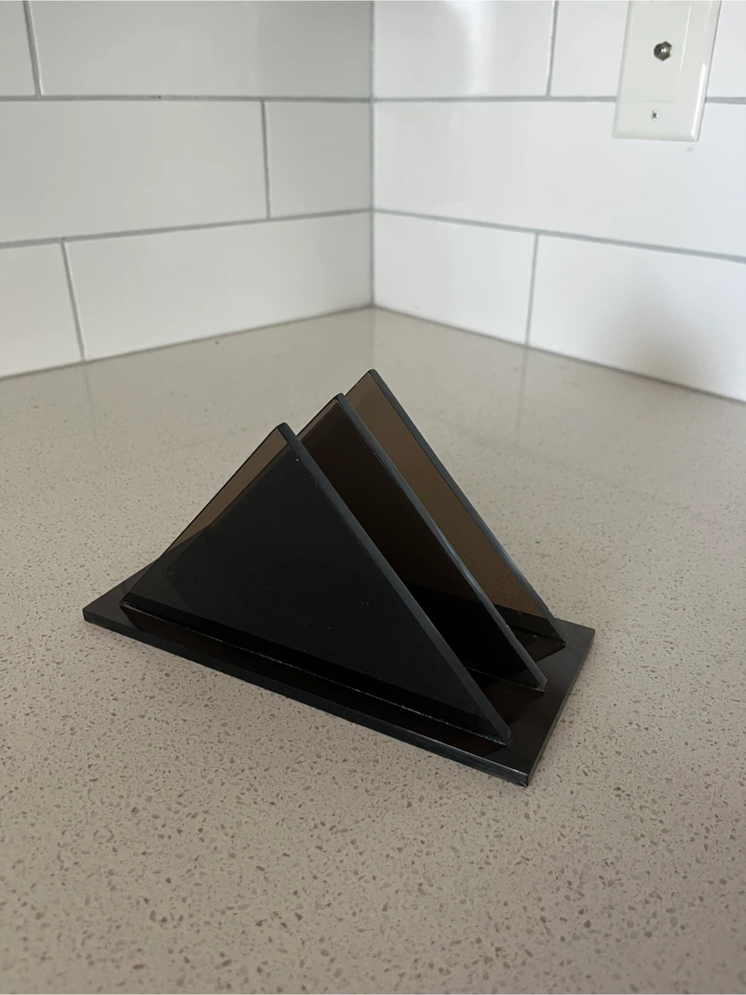 Selling this unique Vintage 1960's modernist smoked plastic triangular desk organizer. Resembling the great pyramids!