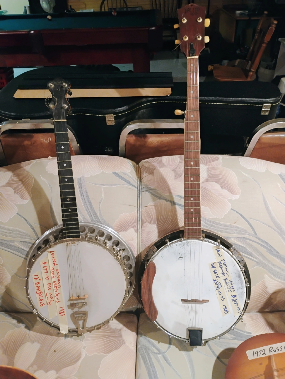 three banjos for sale ! fender. Leo 1970's IRIN USA 5 string banjo 1960and John Grey &:Sons London England! 1935all ready to play Fender $699.00! John Grey $799.00! IRIN USA $999.00! PLEASE CONTACT ME!
