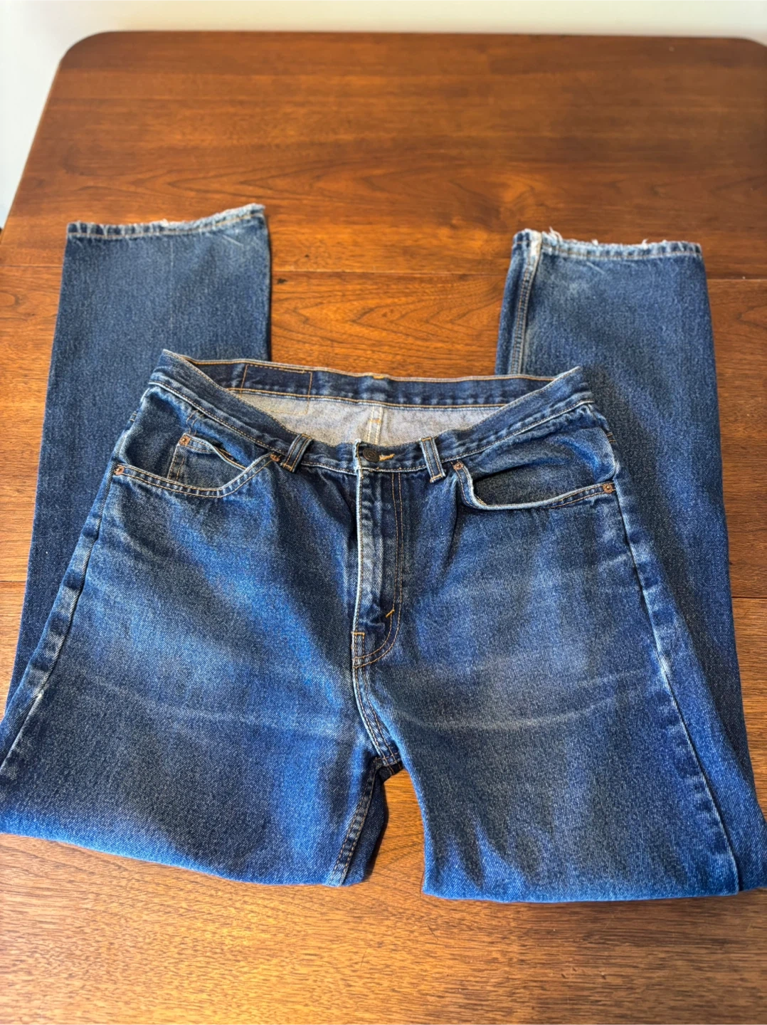 Vintage Levi’s men’s jeans model number 506 with orange tab. Produced March of 2005. 34X32. Overall good condition. Some minor wear at the back bottoms as per photos. Cash only.