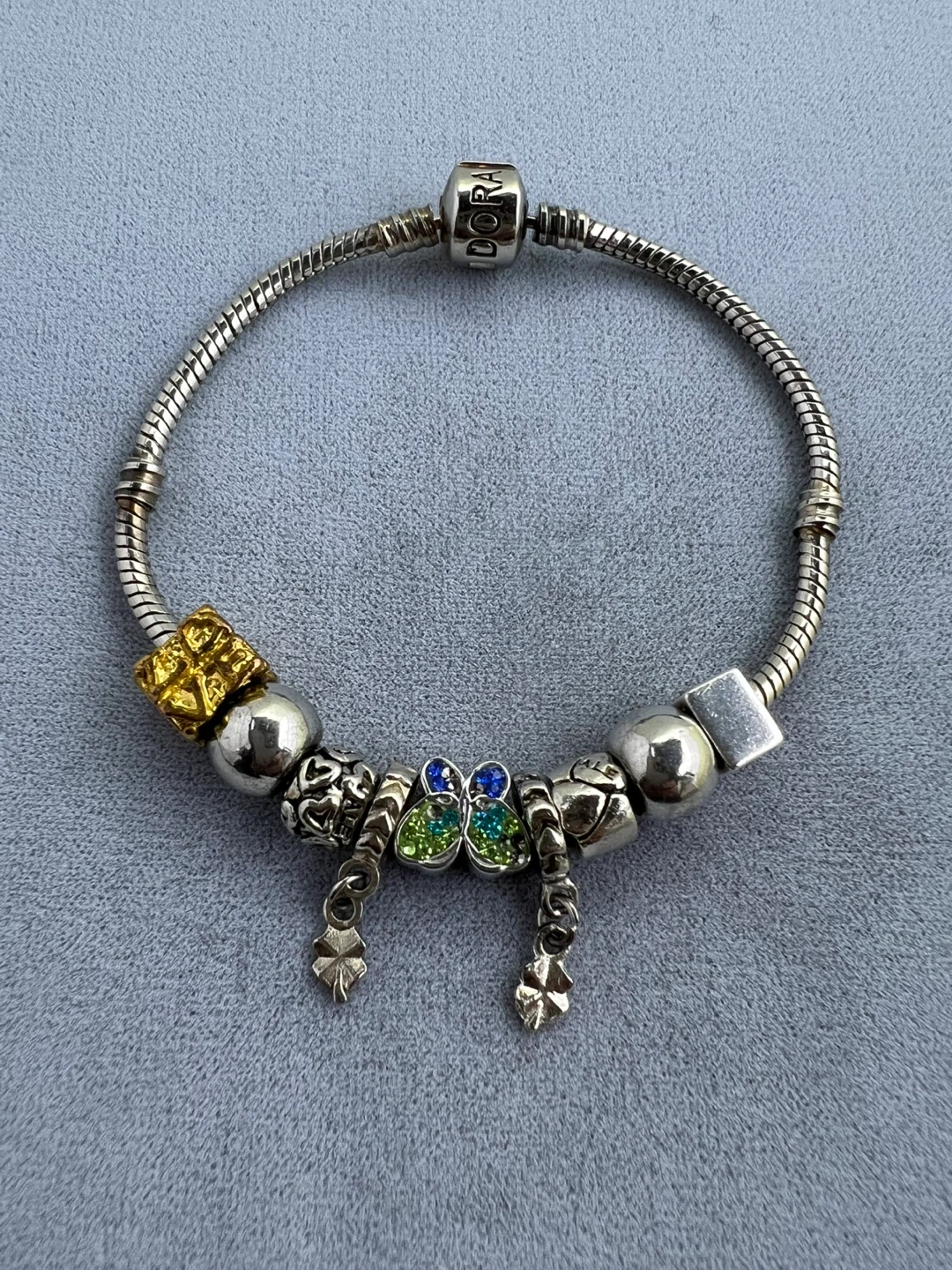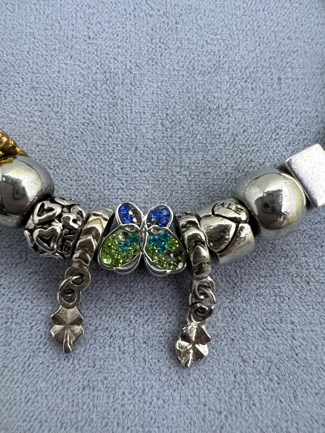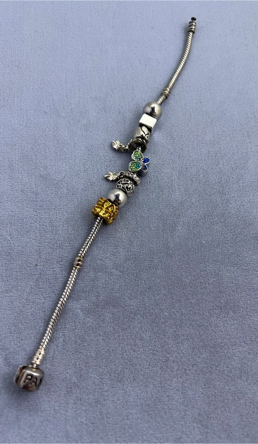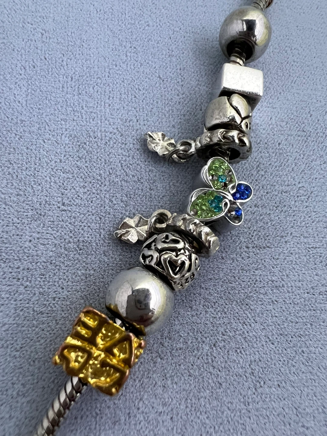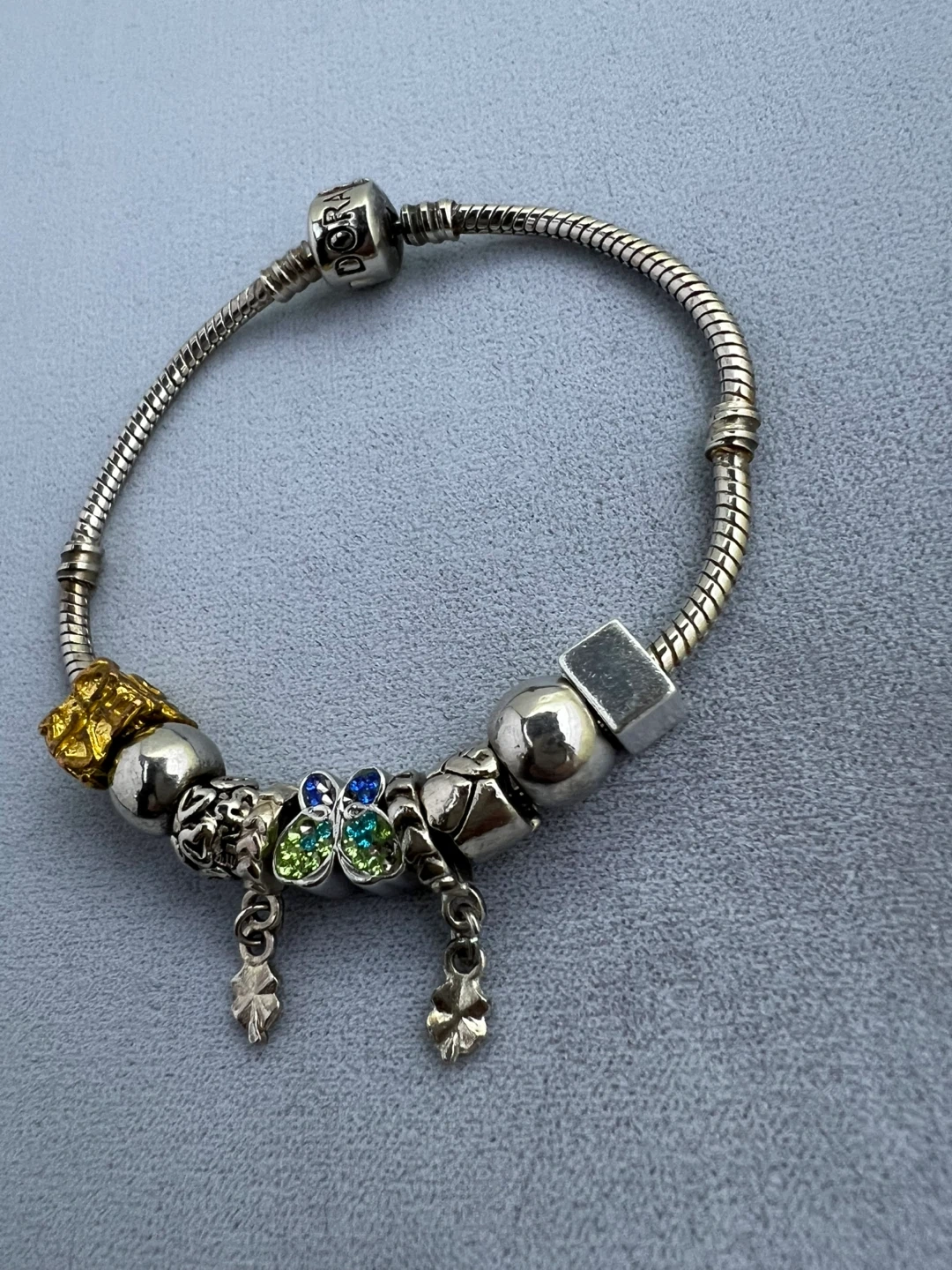 Variety of beads/charms (9 in total) Plenty of room to add more… Standard Pandora clasp Almost 8” long Great vintage condition Asking $50 Interested? Message me and please check my other listings…
