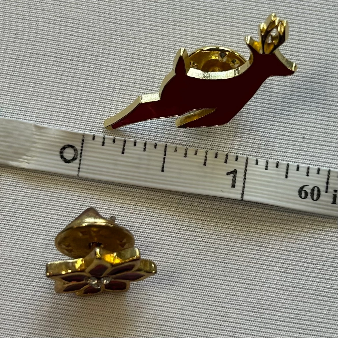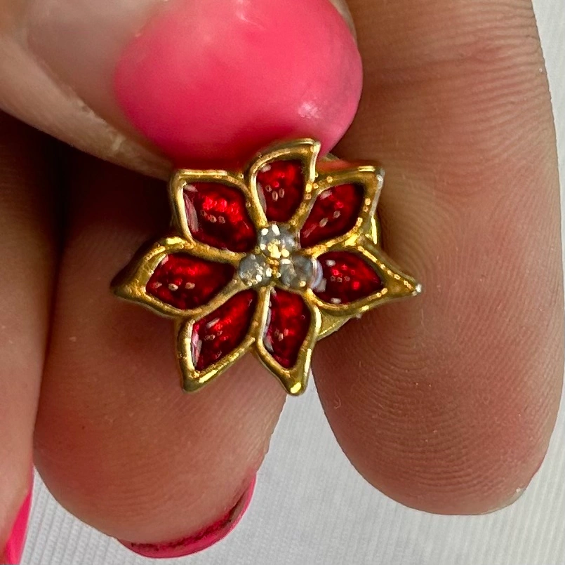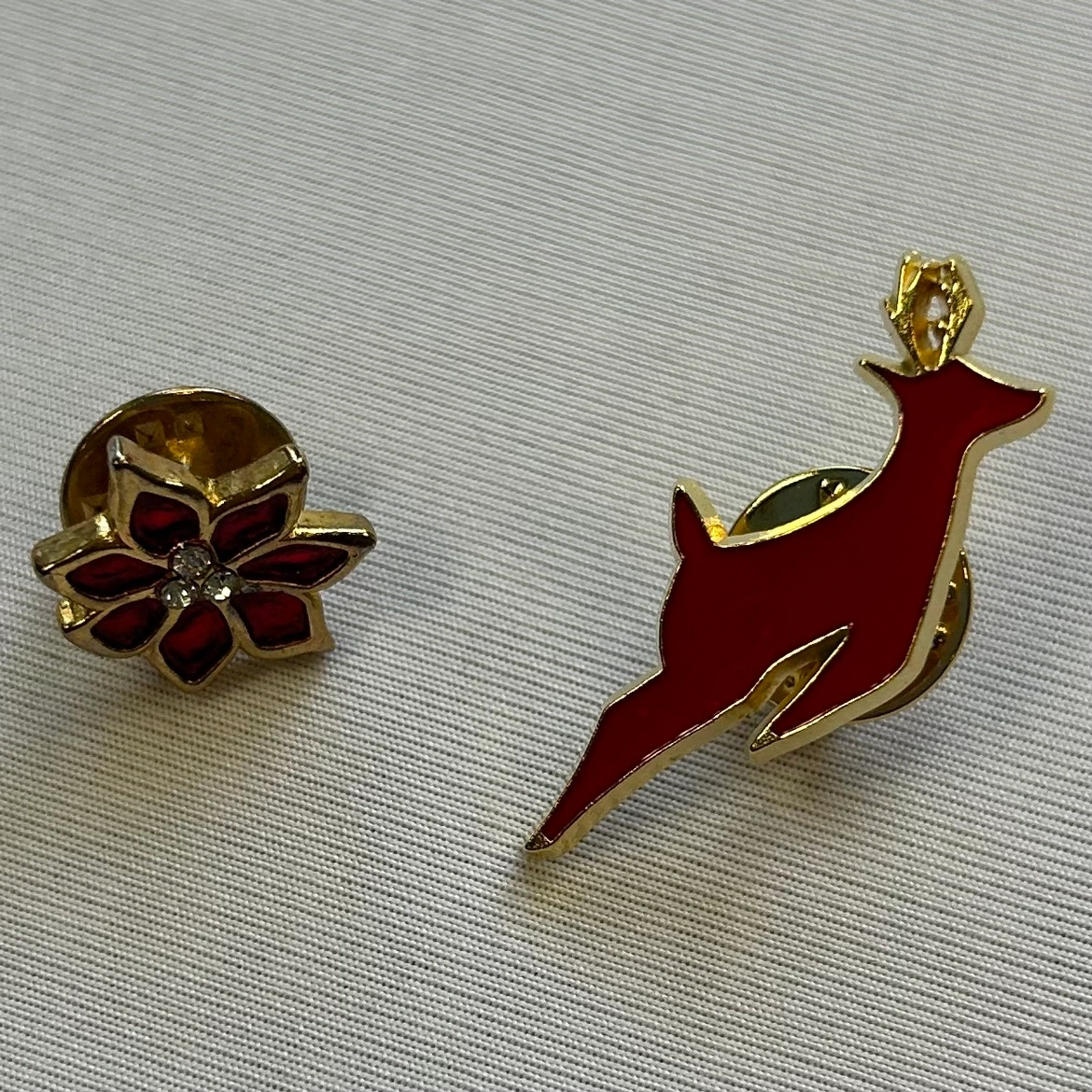 Vintage Poinsettia & Reindeer Lapel Pin Set of 2