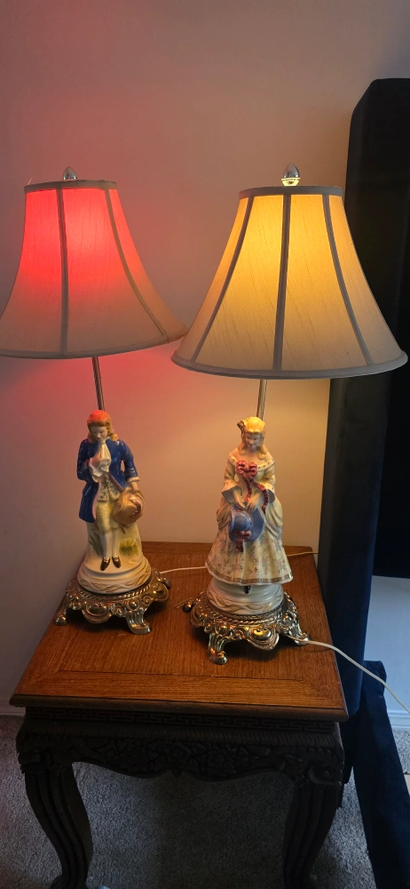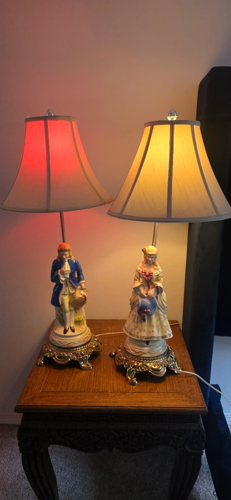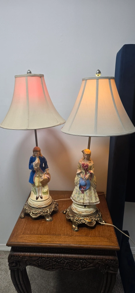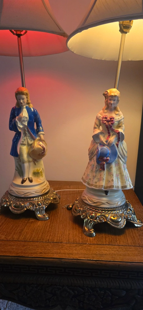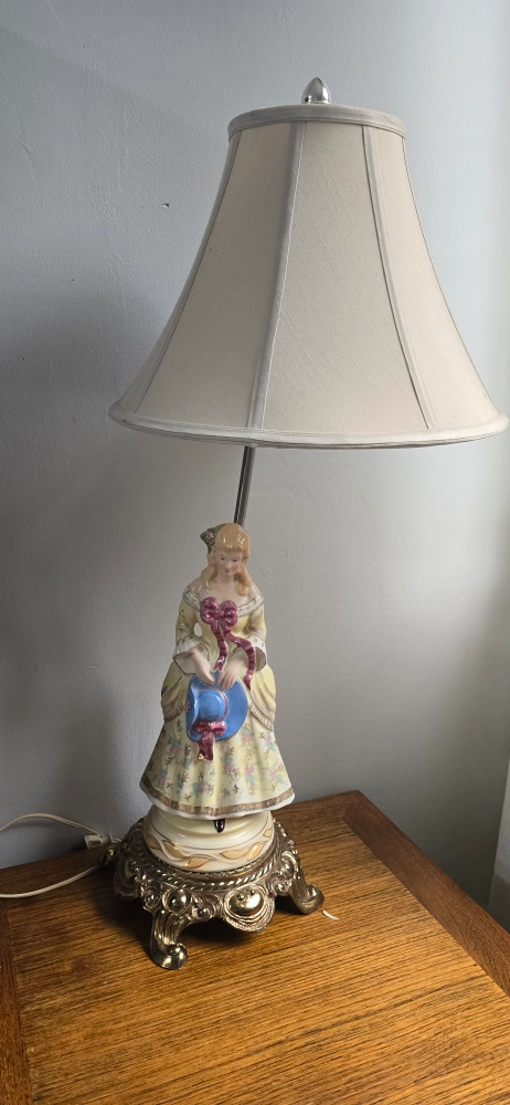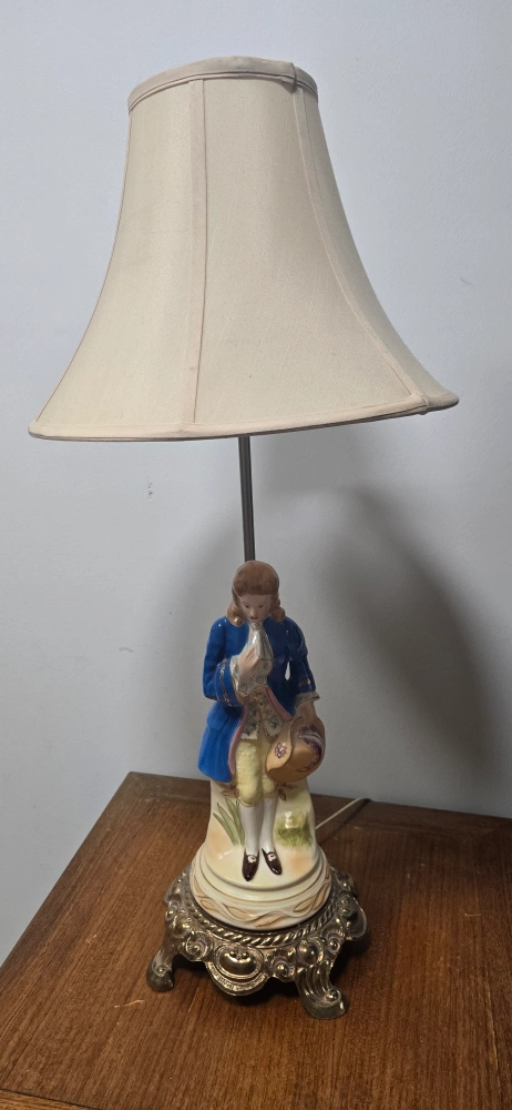 Selling a lovely vintage porcelain figurine lamp! It features a detailed figurine on the base and has a classic lampshade. It would be a charming addition to any room.