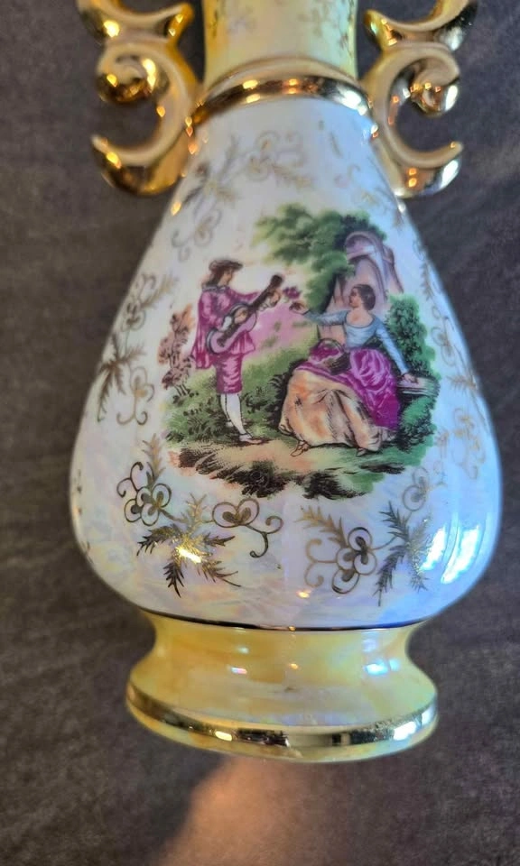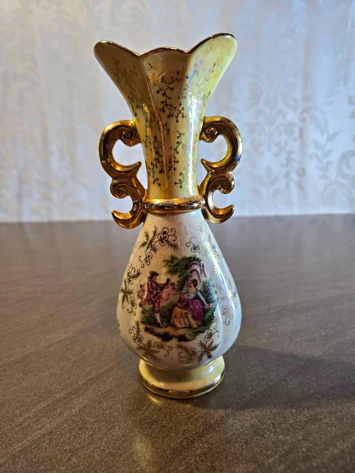 AIRDRIE pickup only. Excellent condition. 9" tall, 3.5" w and 2.5" depth. Features a pastel yellow body, gold detailing, and a painted scene. Small size, ideal for a tabletop display. Cross-posted. 💥If you have a moment please have a look at my other items for sale.