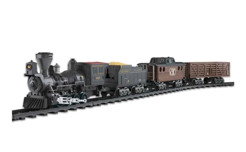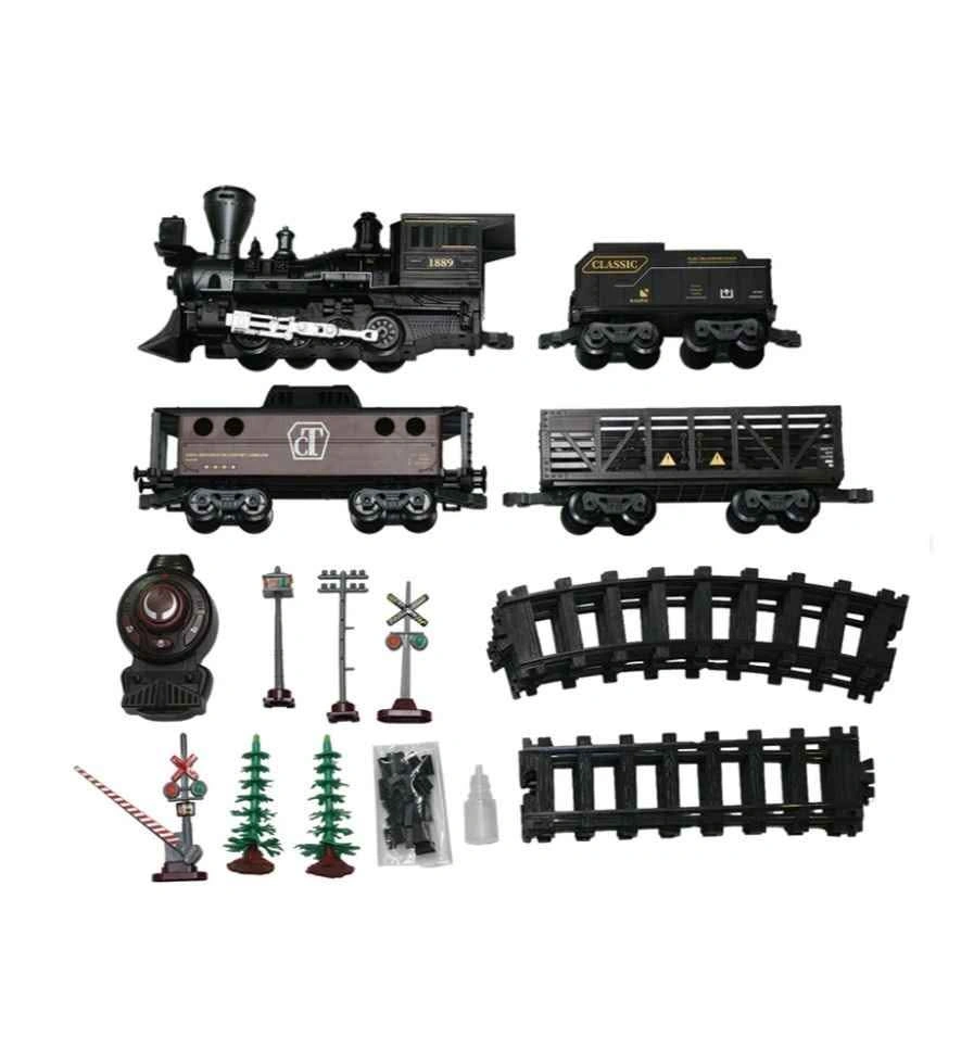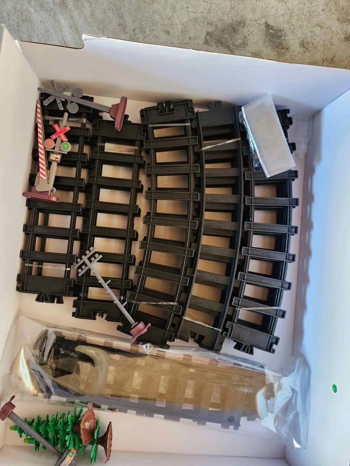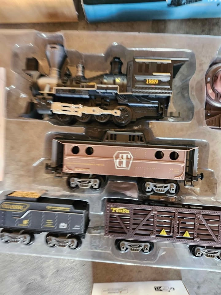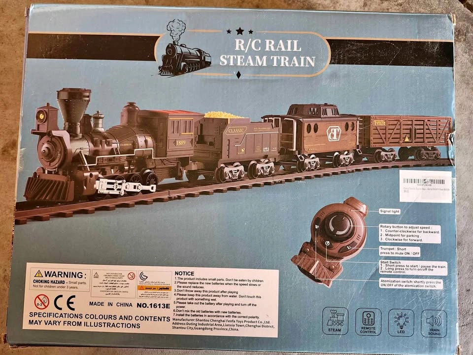 This deluxe set features an authentic classic steam locomotive with working headlight, a coal tender, and two realistic freight cars. It also includes 6 sections of straight track and 12 sections of curved track to create a variety of layouts including a circle, a rectangle or large oval. Track pieces easily connect and come with latches to lock the layouts into place. Powered by the easy to use wireless remote, users can vary the speed going either forward or backward. The remote also includes switches for authentic train sounds, and to puff steam from the smokestack! Train enthusiasts of all ages will love this ready to run battery-operated train set! Includes steam locomotive with remote, 3 cargo cars, 18 sections of straight and curved track, two trees and 4 signs. Easy set-up, plus train can run on or off track. Reusable carry case packaging. Requires 6 AA batteries (not included). CASH ONLY PLS THANK YOU🙇♂️ 🤌PLS Just message Me when you want To Pick Up 🤌 LOCATION: FATHER JAMES WHELIHAN SCHOOL Sunmills, Calgary (NEAREST LANDMARK) Reasonable offers accepted 😉 Kindly check my other post
