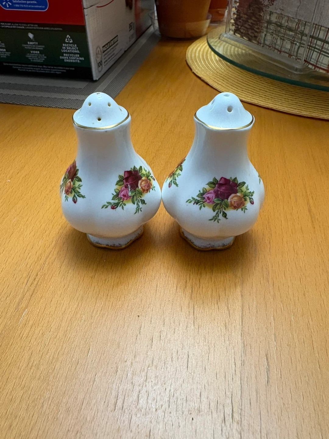 Here's a lovely set of Royal Albert Old Country Roses salt and pepper shakers! They have a delicate floral pattern and gold trim. Perfect for adding a touch of vintage charm to your table. Cash and pickup only