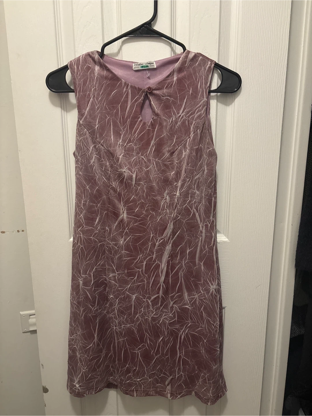 Selling a Salon Monique dress in size small. The dress is a lovely mauve colour with an interesting pattern. It's in great condition and ready for a new home
