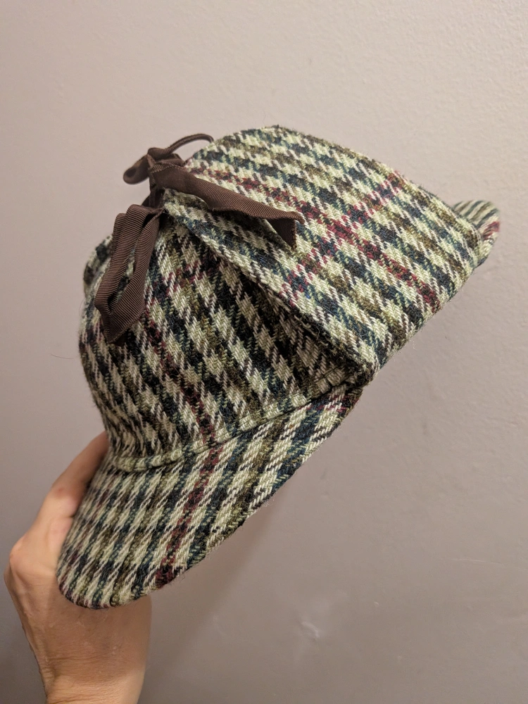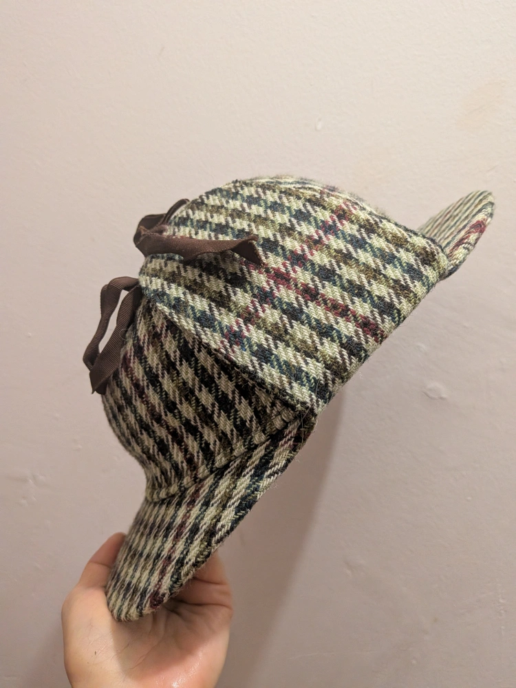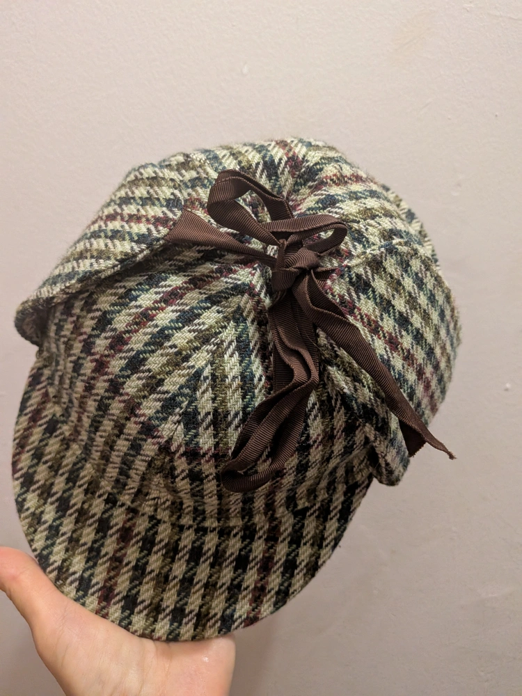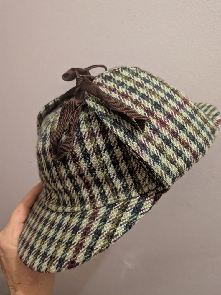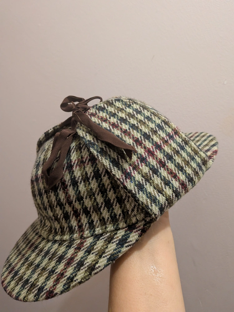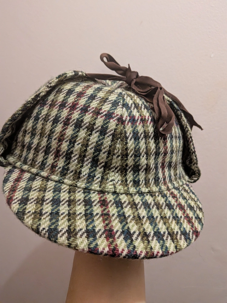 Selling a men's vintage classic deerstalker hat from the 40's - 50's era. Perfect for completing your Sherlock Holmes look or adding a touch of vintage charm to your wardrobe! The hat features a stylish houndstooth pattern and a brown ribbon detail. It's in great condition and ready for a new home Made in the UK Cash only, no etransfers Location: Etobicoke. Rathburn Rd and Renforth dr. Etobicoke Olympium nearby