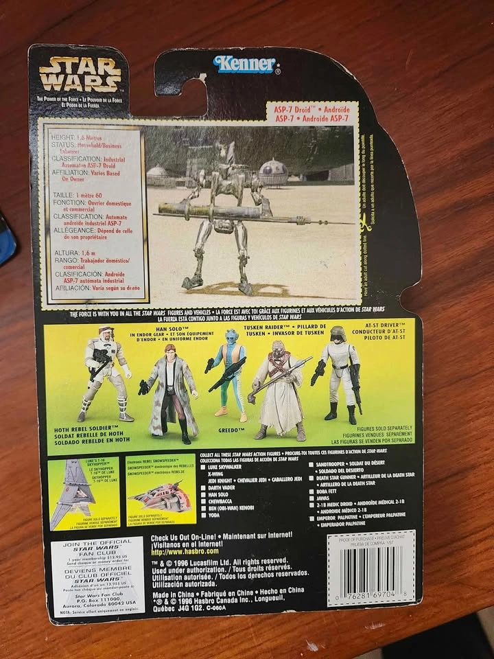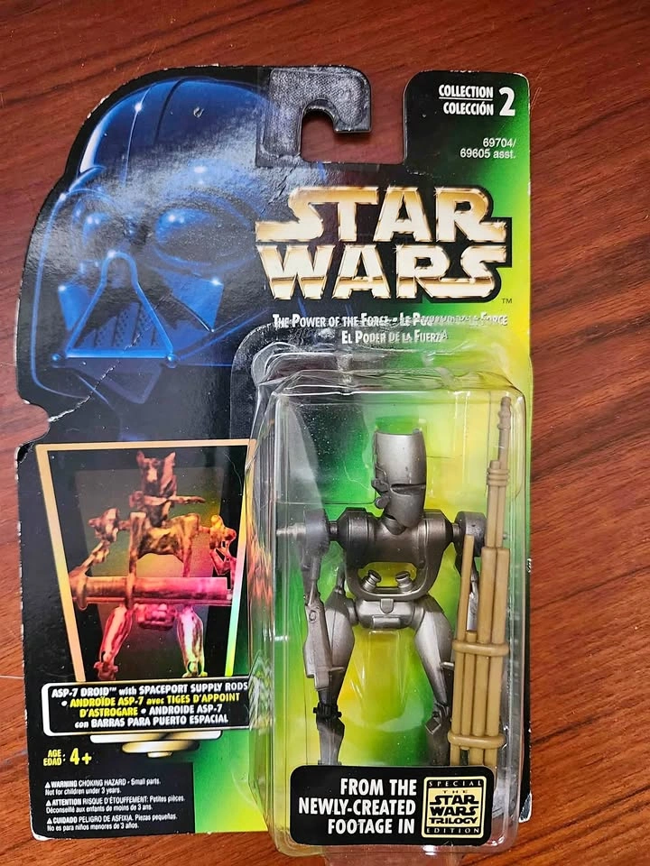 Get your hands on this Star Wars ASP-7 Droid action figure from the Special Edition Trilogy, it has been partially opened. This collectible figure features intricate detailing and is perfect for Star Wars enthusiasts and collectors alike.