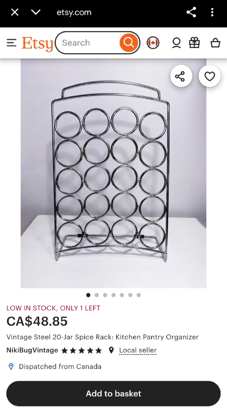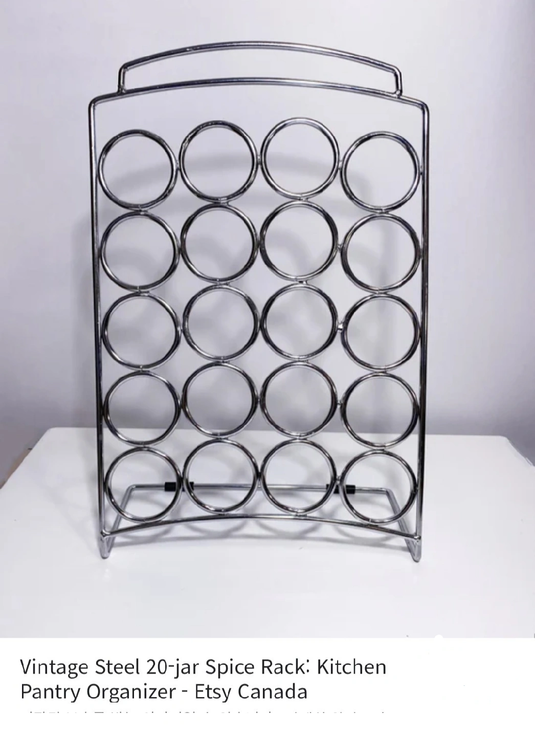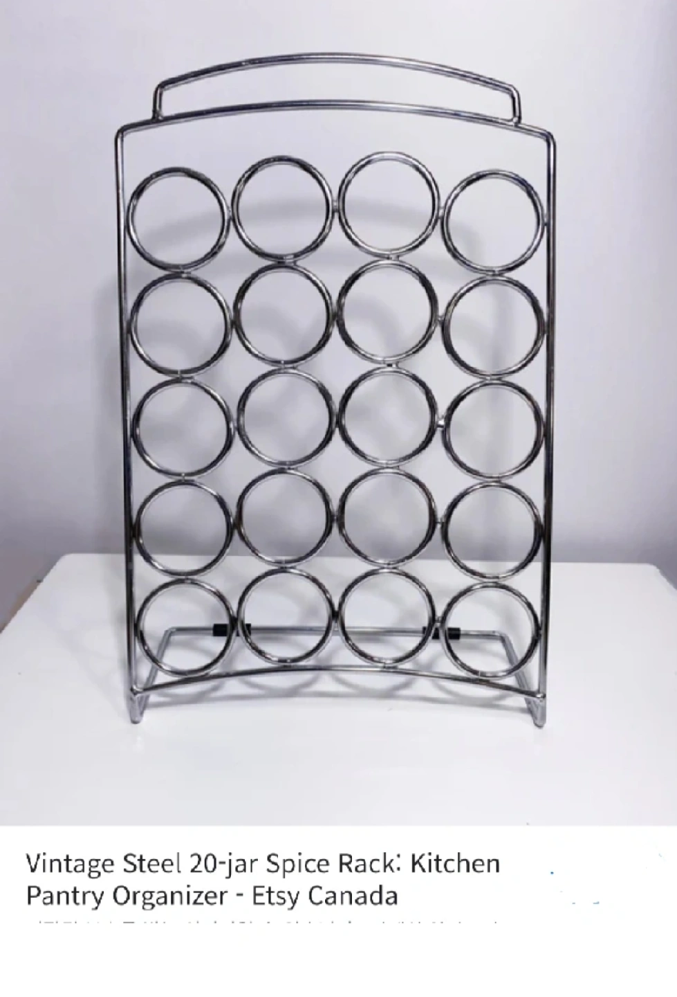Selling a vintage steel spice rack! It's a kitchen pantry organizer with space for 20 jars. The diameter of each circle is 1.8 inches Originally bought for $48.85 never used.