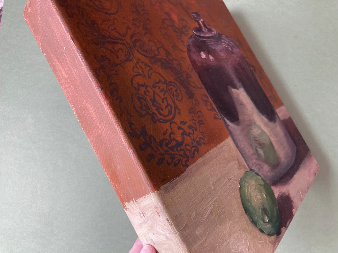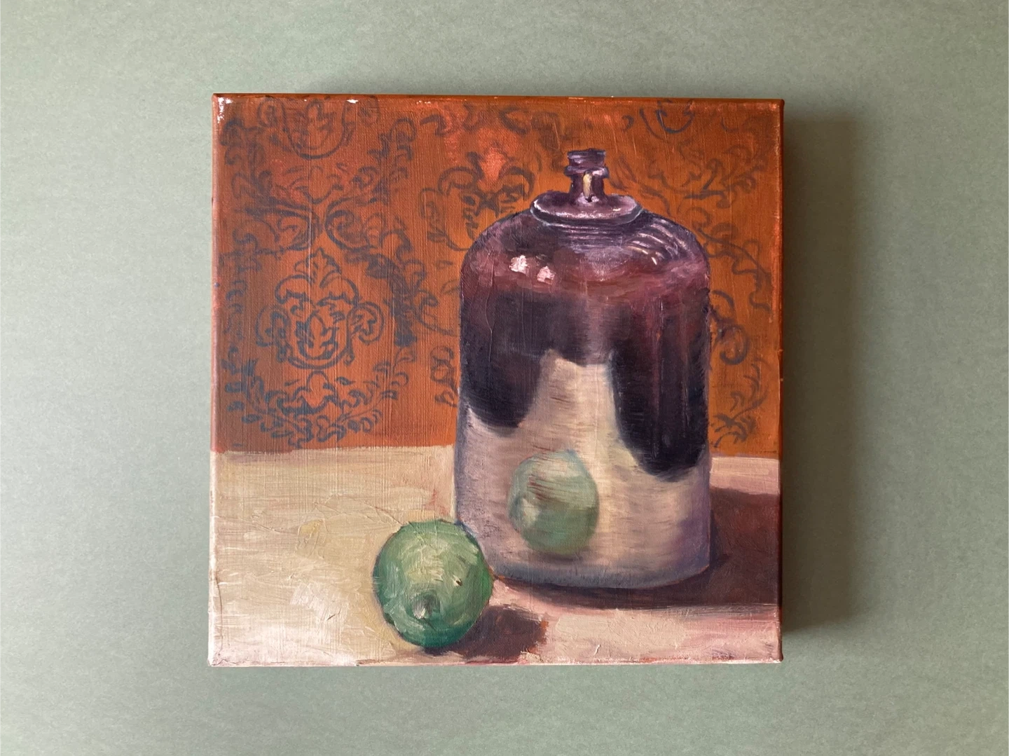 Vintage still life of a glass jug and lime. Painting is oil on stretched canvas with details in the back of the painting along with the name of the artist. 12” x 12”. Some chipping can be seen on the edges of the painting. Pick up in the Ossington and Davenport area.  check no my other listings for more vintage home decor 🙂