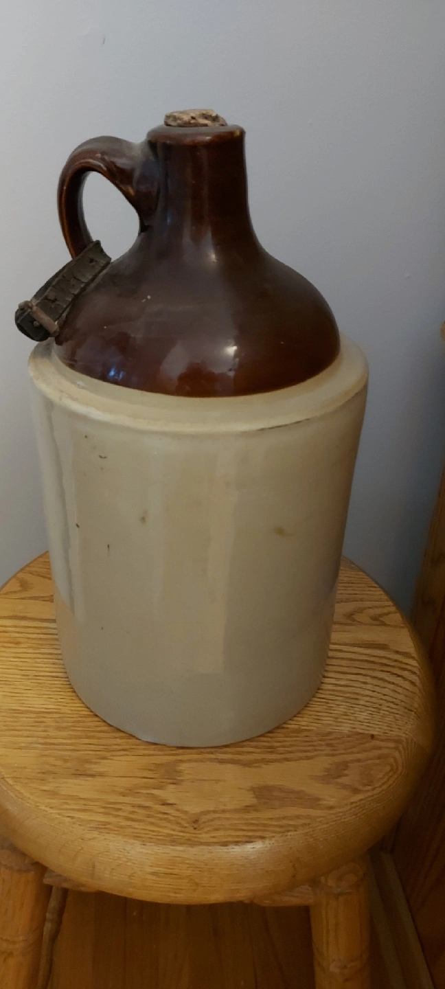 Selling a charming vintage stoneware jug! It's in good condition and would make a lovely addition to any home. The jug features a classic two-tone design with a brown top and a beige base. Perfect for adding a touch of rustic charm to your decor