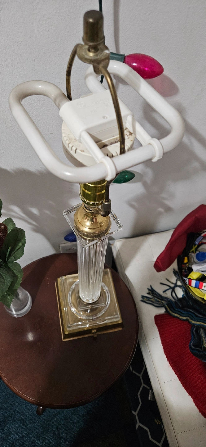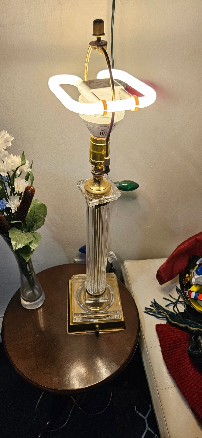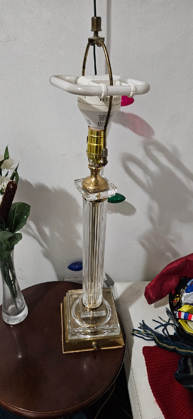 Selling a unique vintage-style table lamp! It features a crystal column design with gold accents. It's in great condition and would add a touch of elegance to any room