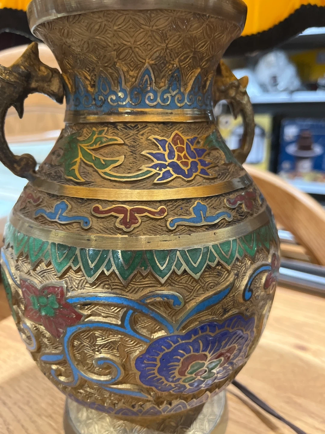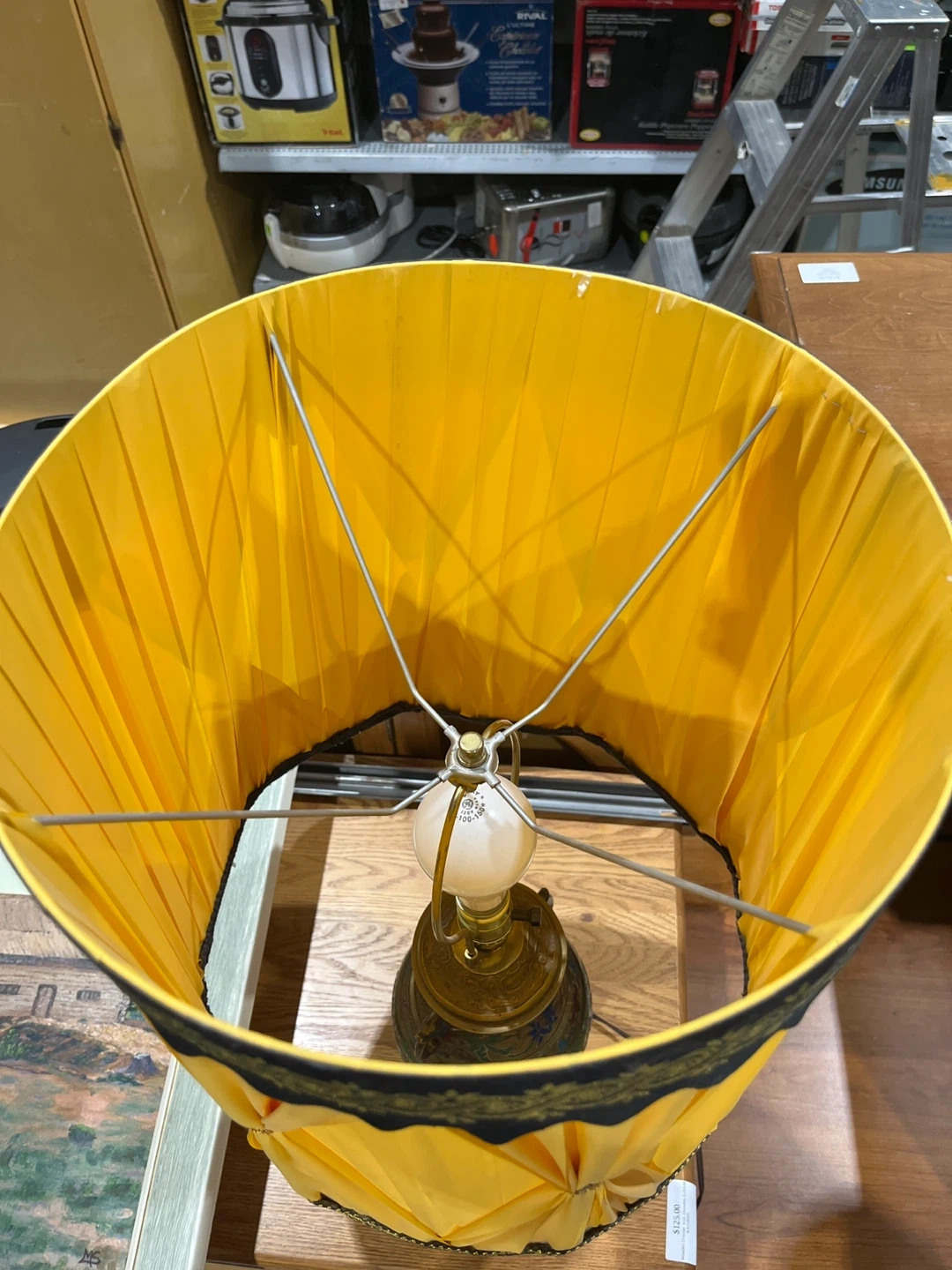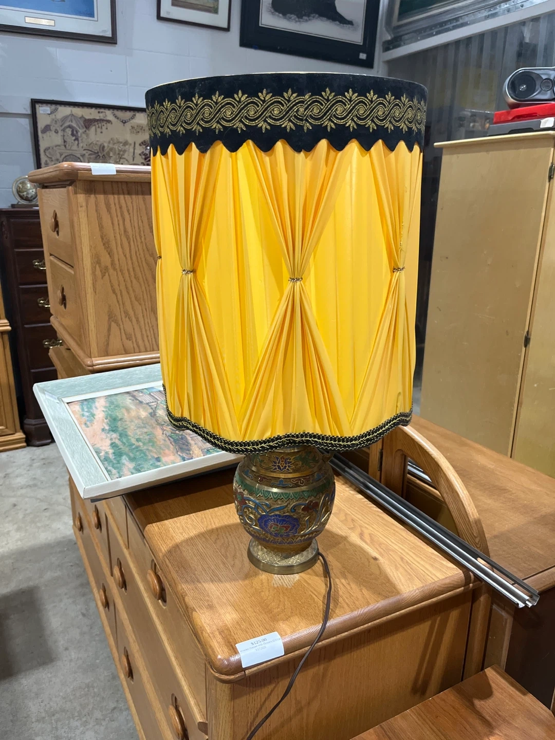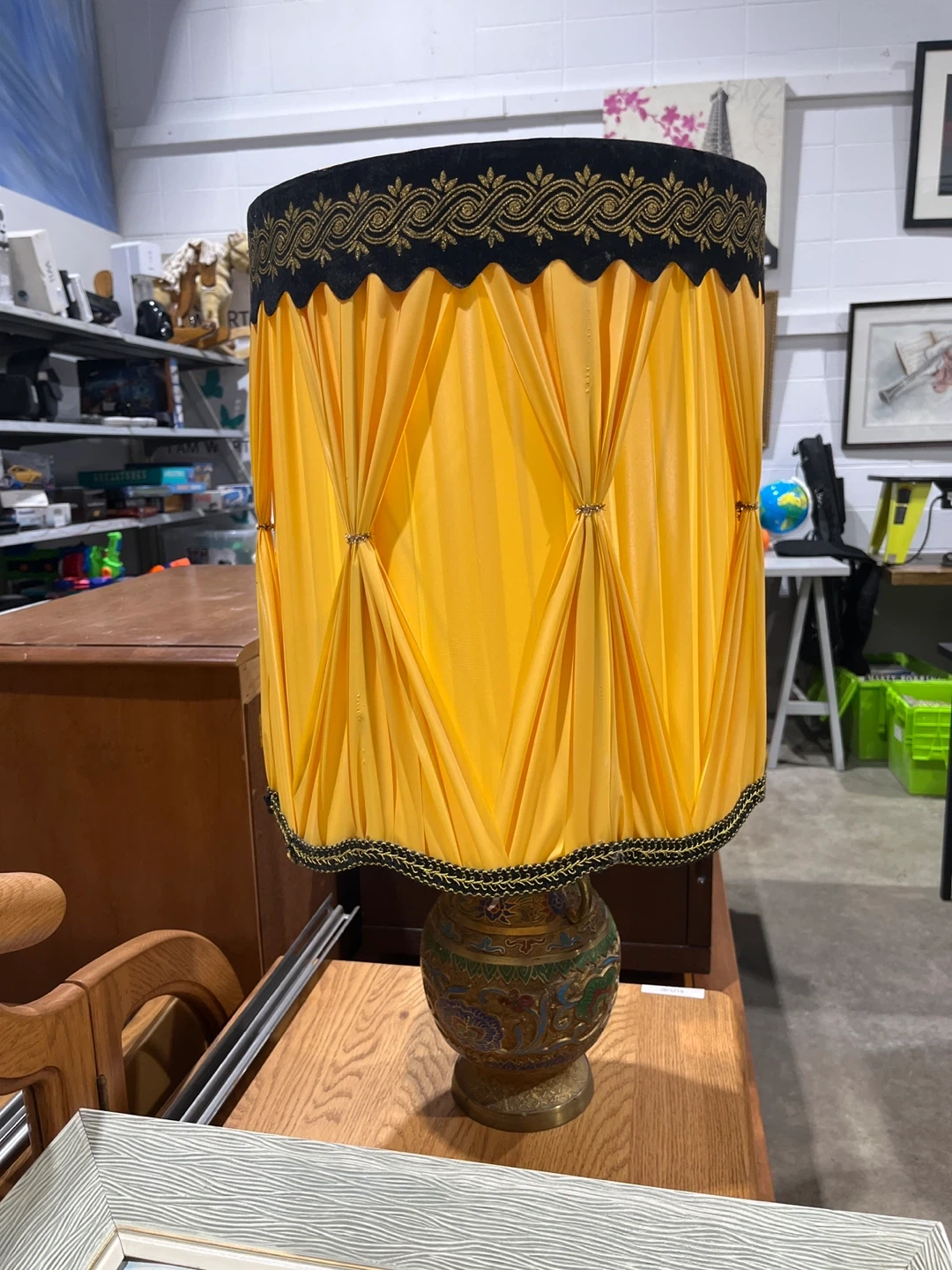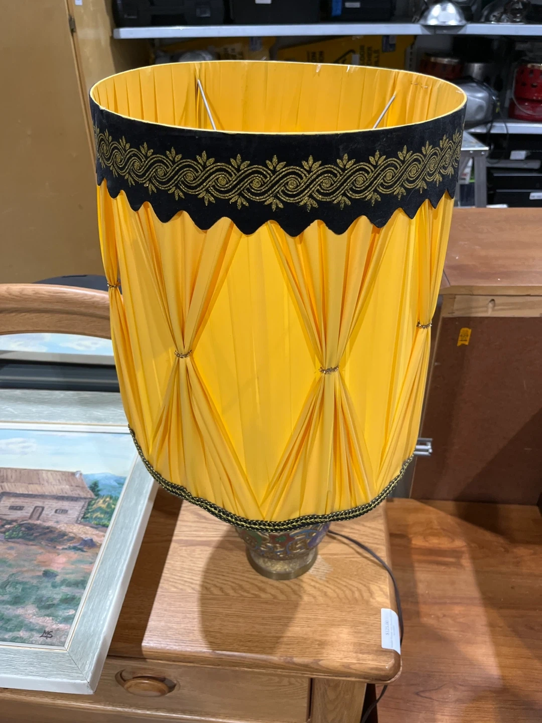 Here's a lovely table lamp with a unique, vintage-inspired design! The base features intricate detailing and colourful accents, while the yellow shade adds a warm glow. It's perfect for adding a touch of character to any room in your home Visit Rebound Centre Thrift Store 6215 3rd St SE, Unit C11 Open daily 10 AM – 5 PM Local pickup available See more at Reboundcentre.com