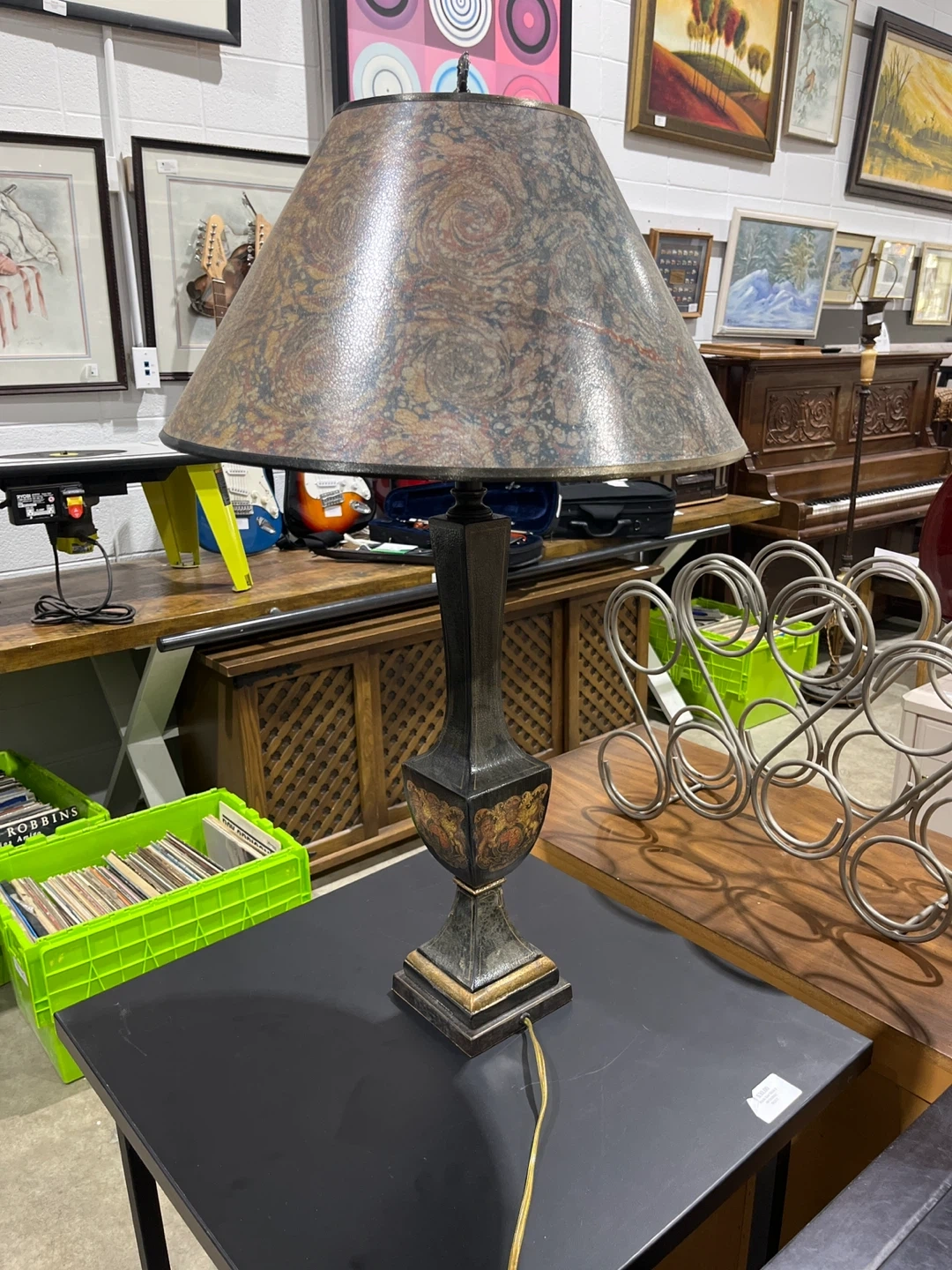Selling a vintage table lamp that would add a touch of elegance to any room! The lamp features a unique patterned shade and a decorative base. It's in good condition and ready to brighten up your space Visit Rebound Centre Thrift Store 6215 3rd St SE, Unit C11 Open daily 10 AM – 5 PM Local pickup available See more at Reboundcentre.com