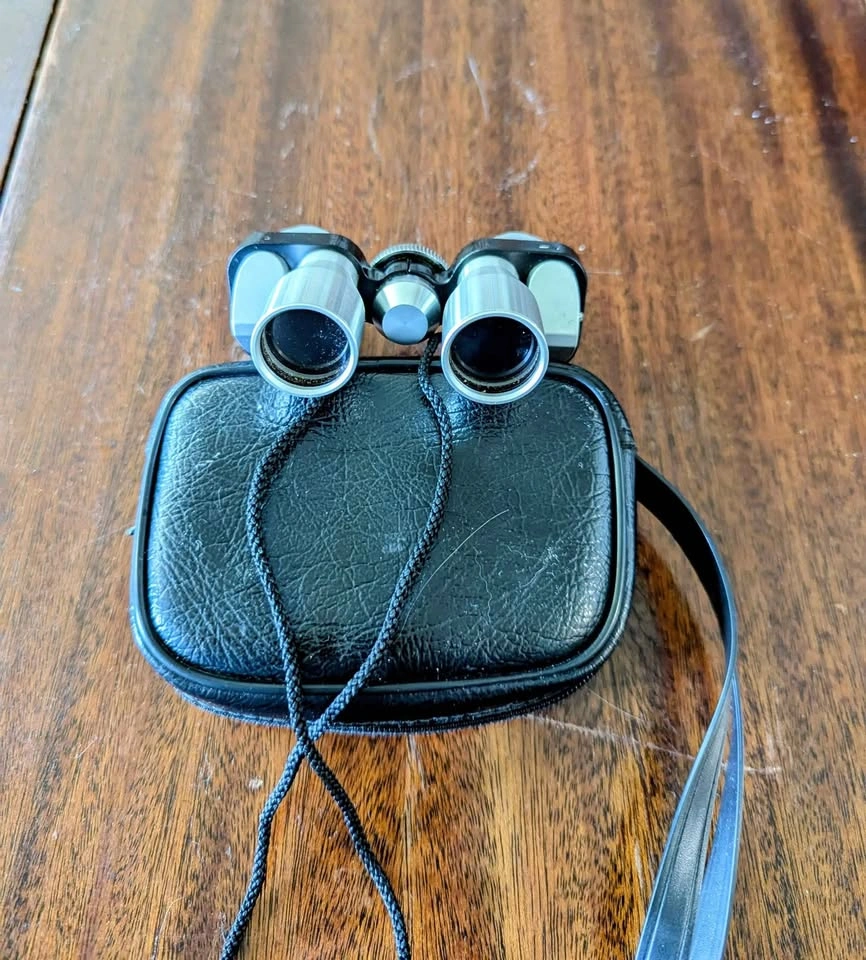 Vintage Tasco binoculars, model number 502. These are fully coated 8x20 binoculars with a field view of 262ft at 1000yds. They come with the original black leather-like case and a neck strap. These are in good condition and would be a great addition for a collector or for general use. They are perfect for sporting events, bird watching, or general outdoor activities.