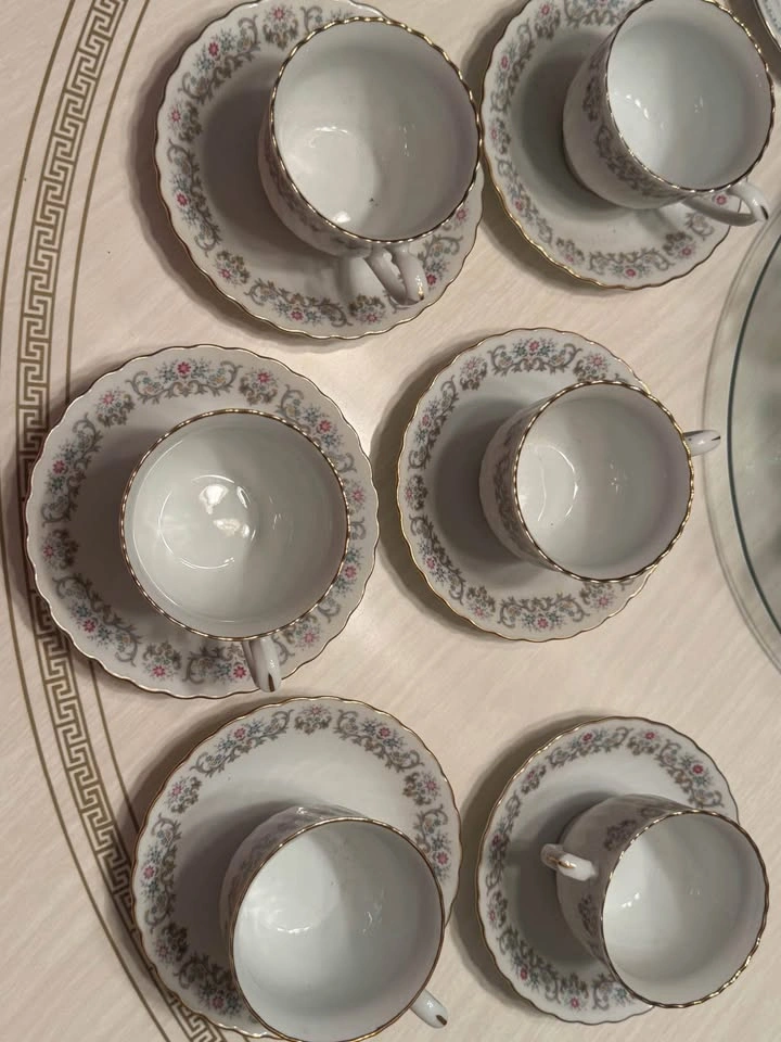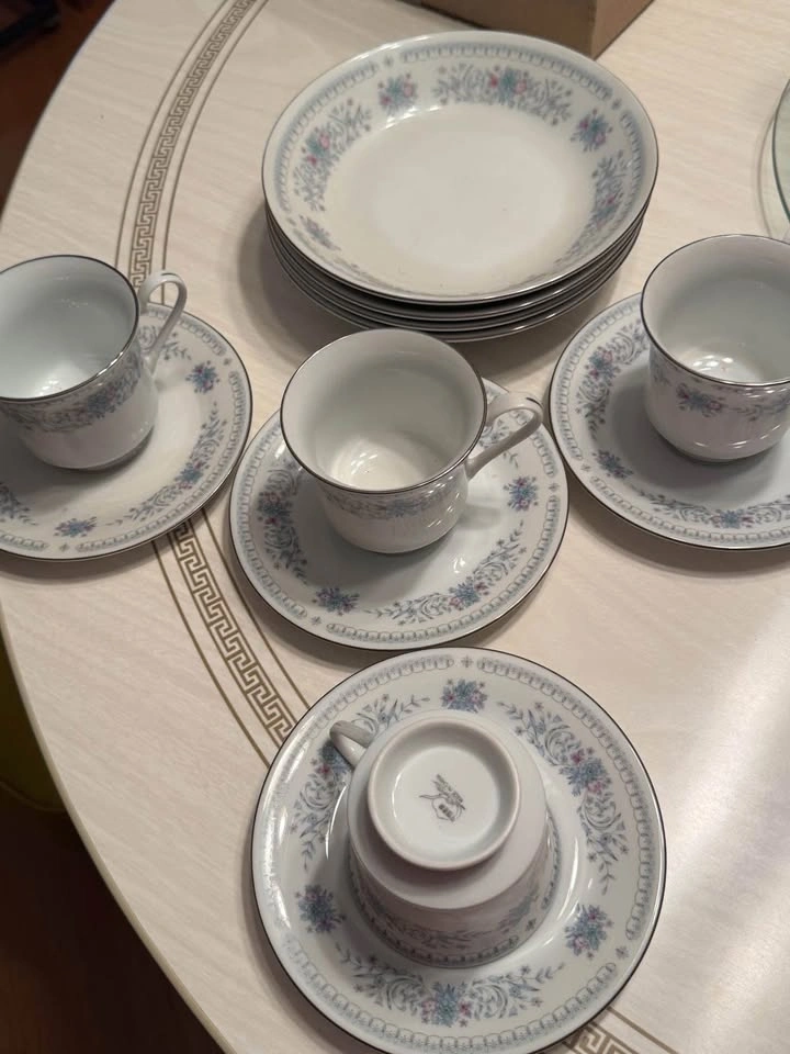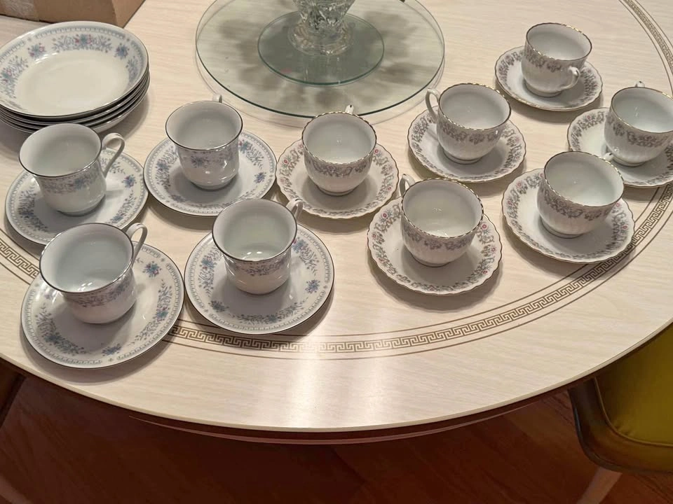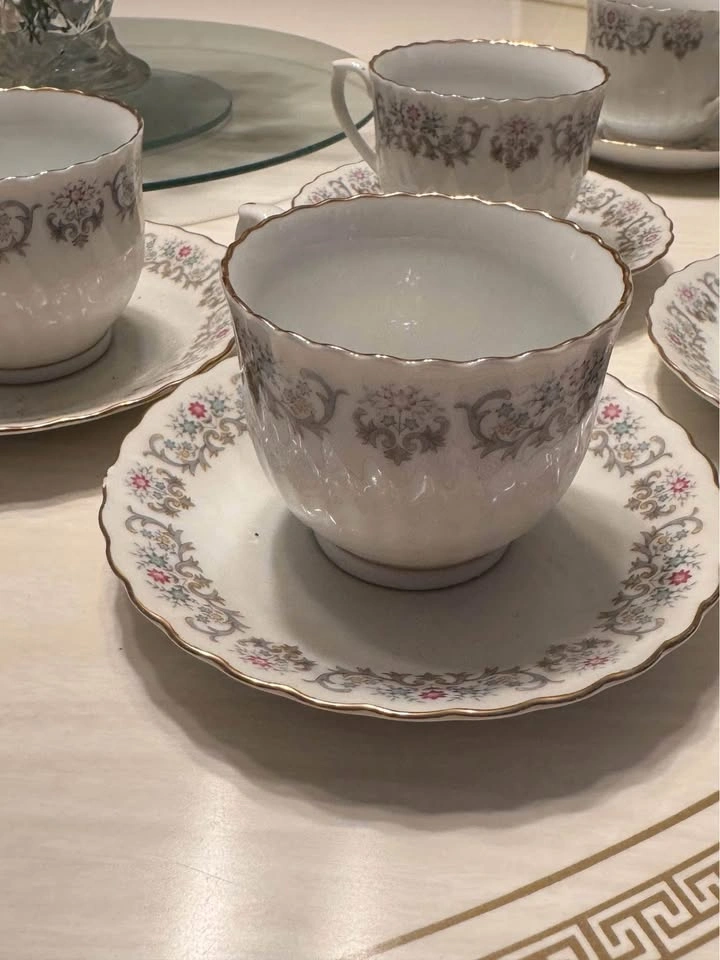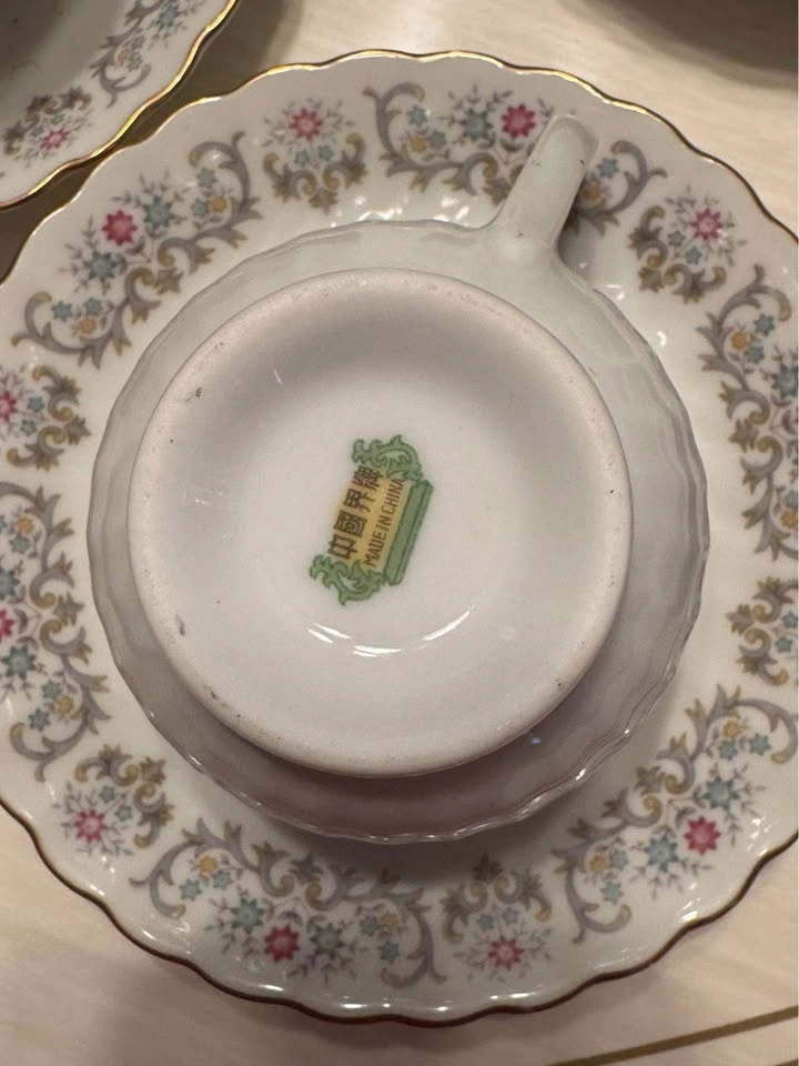 Vintage Tea Cups & Saucers - Crown Ming Floral Pattern 6 Tea cups and saucers Zhong Guo Jie Pai Oriental Bone China Porcelain 4 tea cups and saucers and 4 bowls Prices for both sets Pick up in Brighton