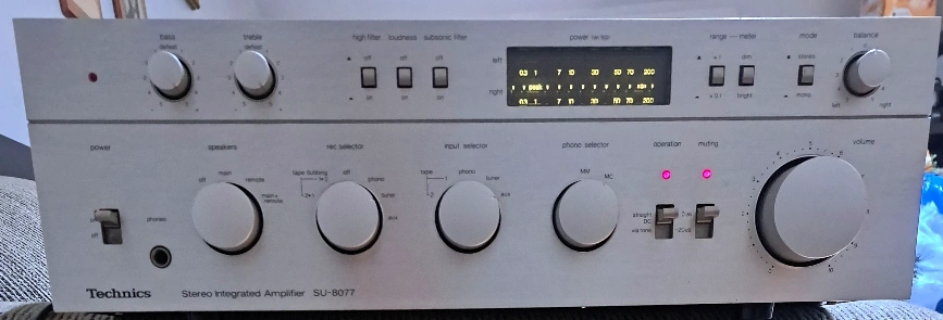Selling a Vintage collectible electronic. Technics SU-8077 stereo integrated amplifier. It's in good shape and ready to bring some vintage sound to your home. Check out the photos for details! Great amplifier for playing old vinyl records as well. Tested - October 6, 2025 ( Amplifier is working great, got it tested and sound check )