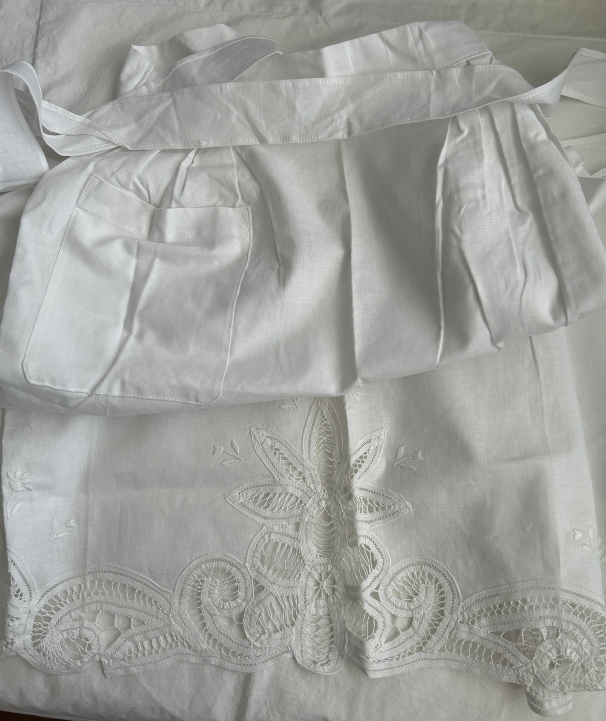 Beautiful vintage crisp white cotton half apron. Features delicate lace trim and a handy pocket. Clean and in new condition. Brand new. Never been worn. Smoke & Pet free home. Cash/Pick up.