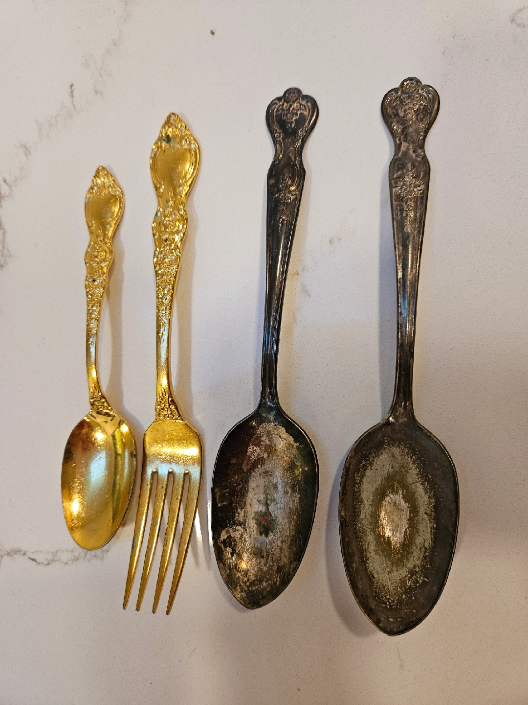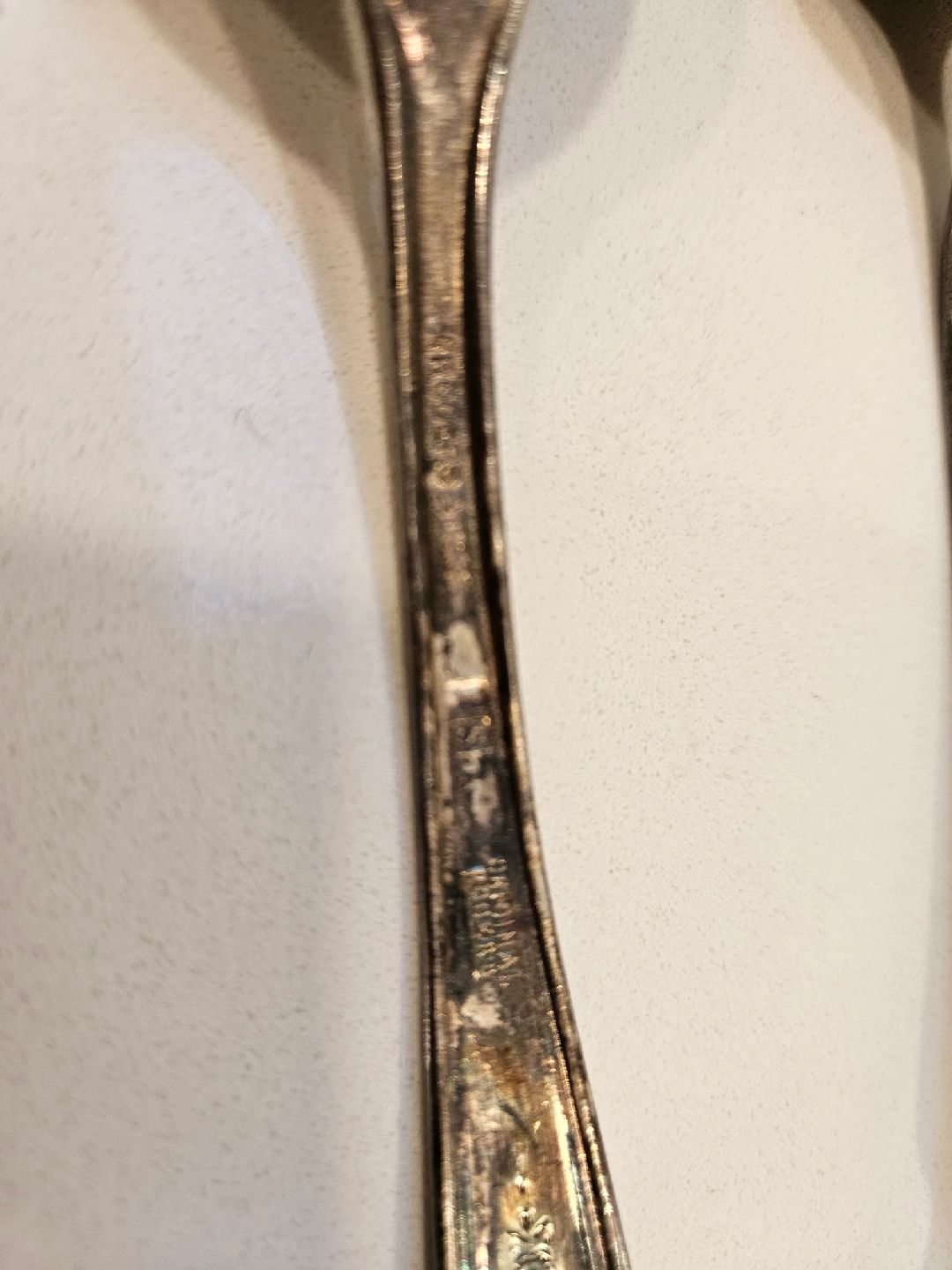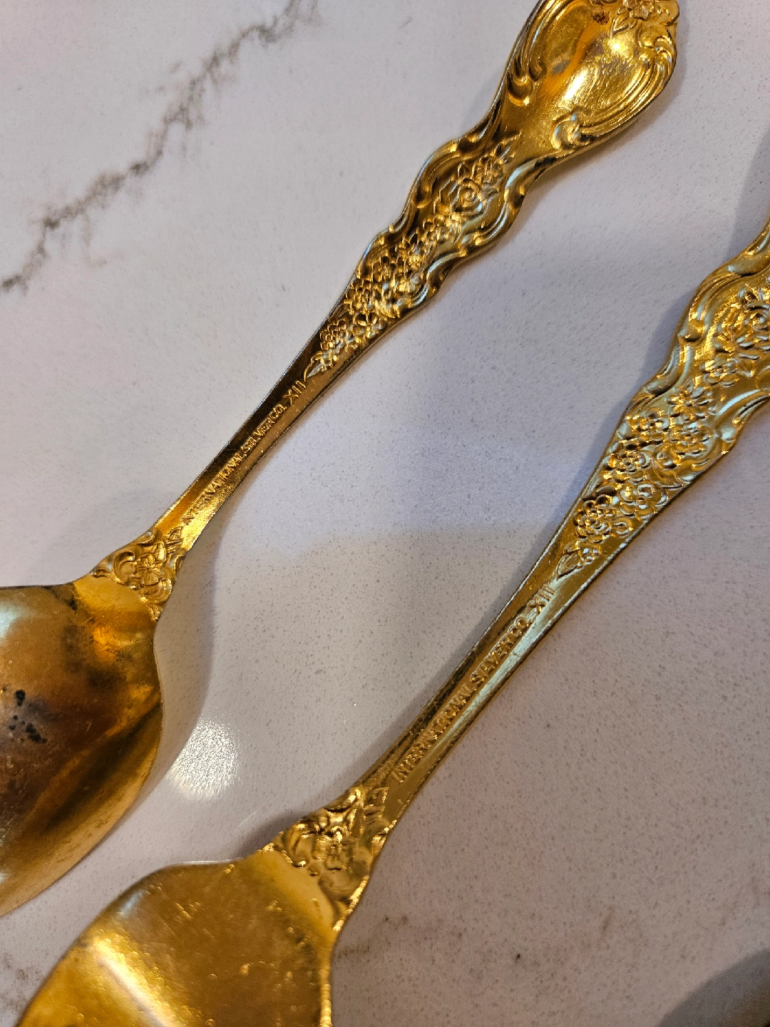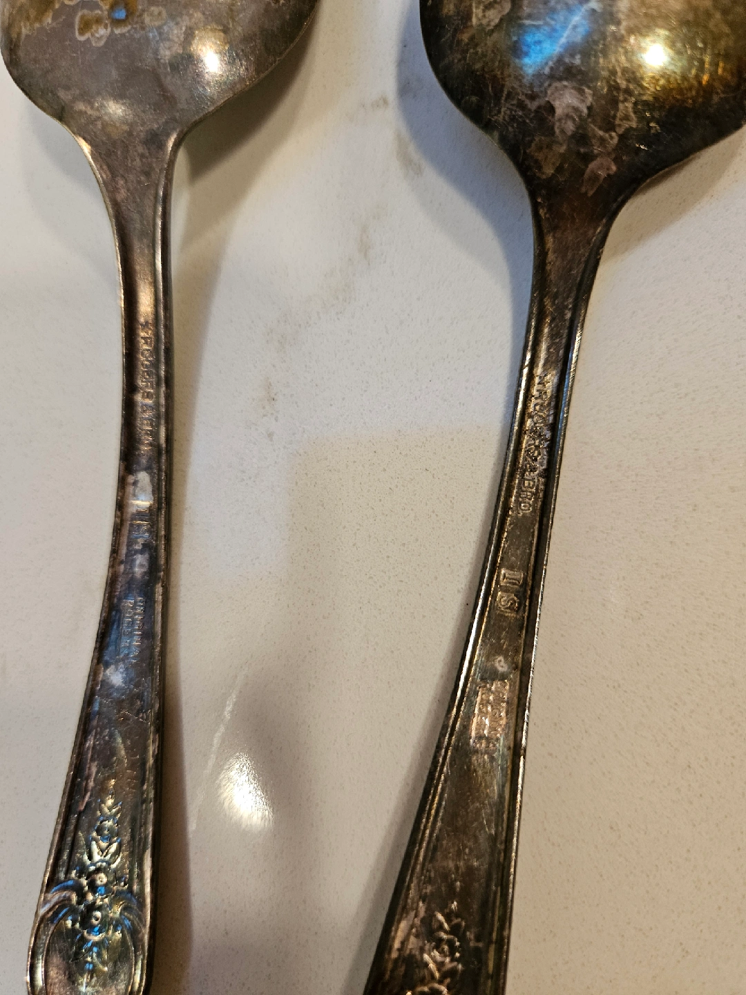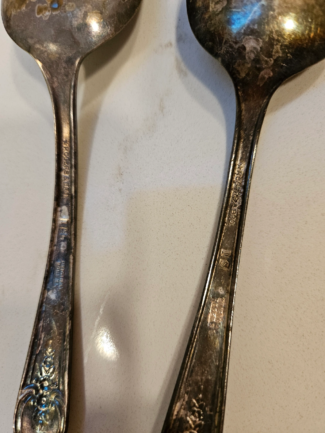 Selling a set of vintage spoons! There are some signs of wear, but they still have a lot of charm. One is marked "Wm Rogers Mfg Co IS" and the other is marked "International Sterling XL12".