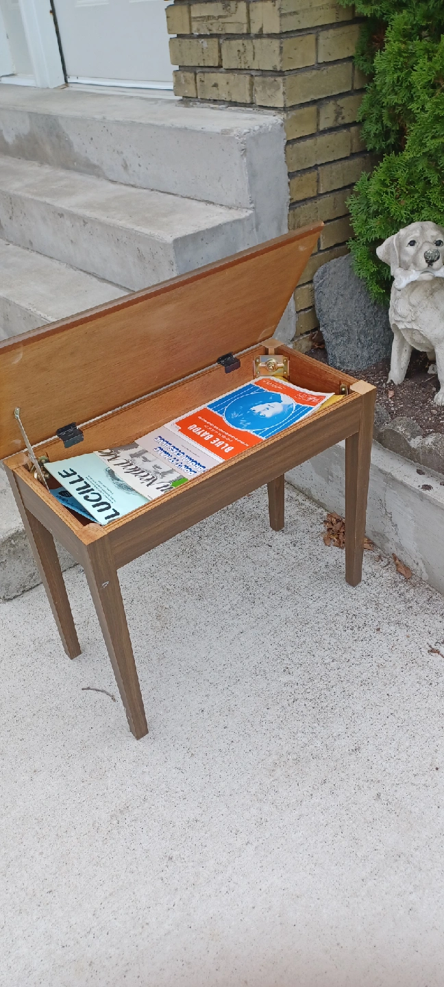Selling a lovely vintage wooden piano bench! It has a lift-up top for storage, perfect for sheet music or other small items. The bench is in good condition and would be a great addition to any home or music room includes some sheet music!! PLEASE CALL NOT TEXT.... 519 729-5862 415 Victoria st south kitchener