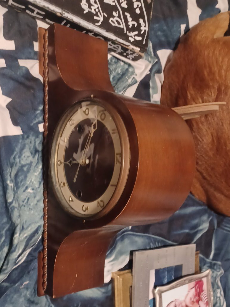Selling a vintage wooden wall clock. It has a unique design and would make a great addition to any room. It is in good condition for its age.