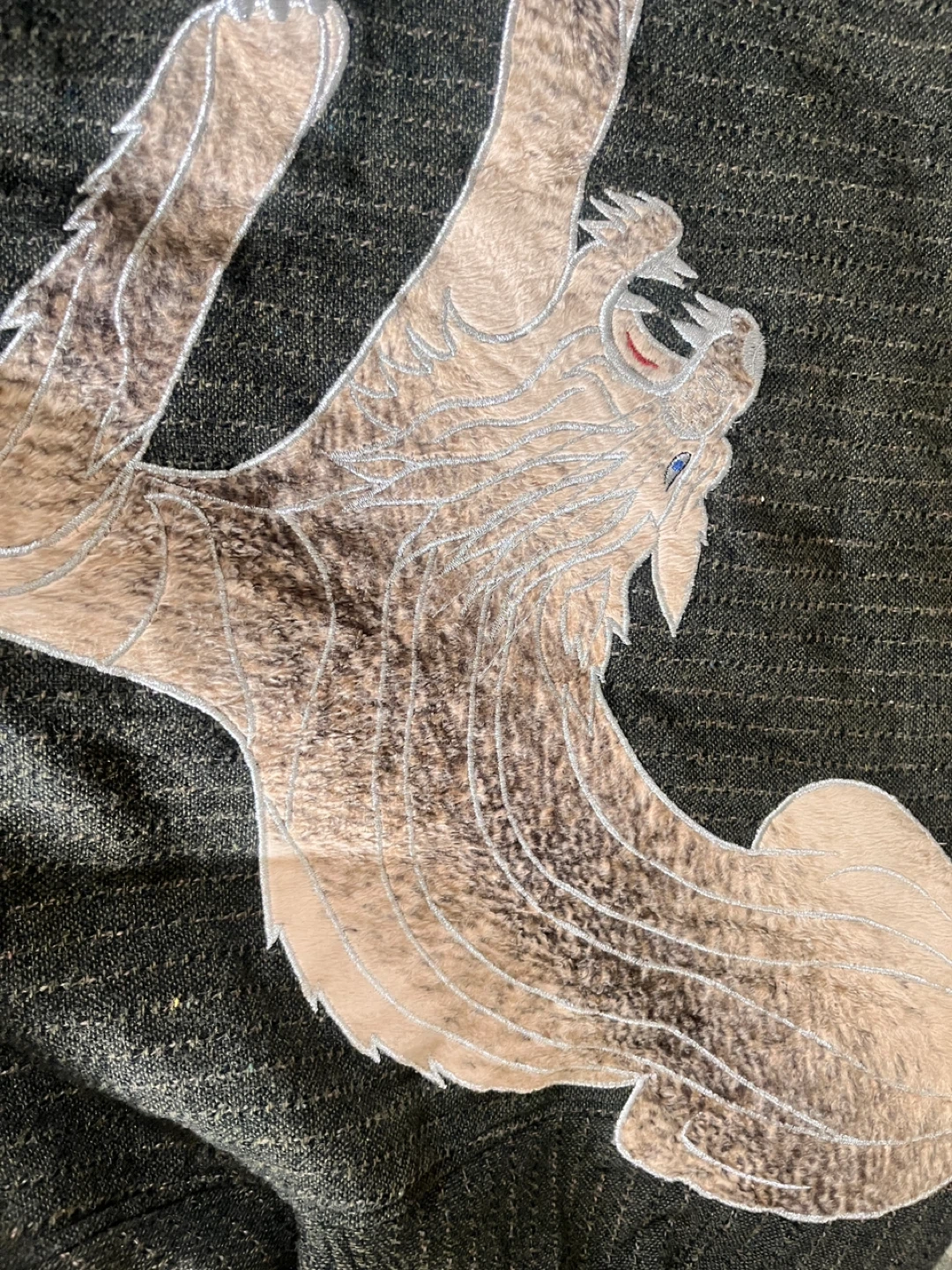 Selling a unique vintage bomber jacket! It features a cool design on the back and a wool blend material. It's in great condition and ready for a new home. Perfect for adding a touch of retro style to your wardrobe!