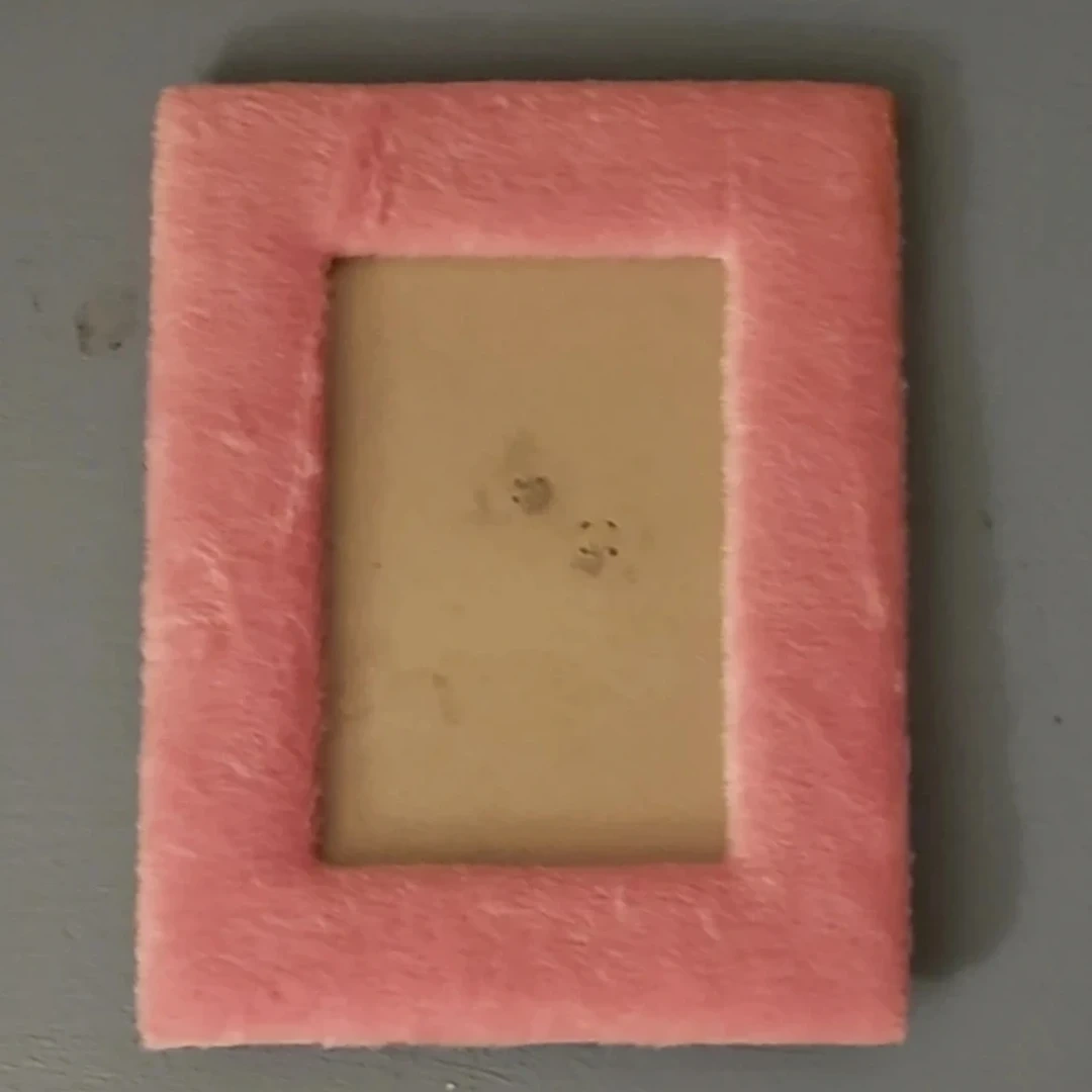 4x6 true Y2K girlypop era fake fur desk frame. There is some mild discoloration on the edge of one corner but it's barely noticeable. The opening of the frame is about 3x5.