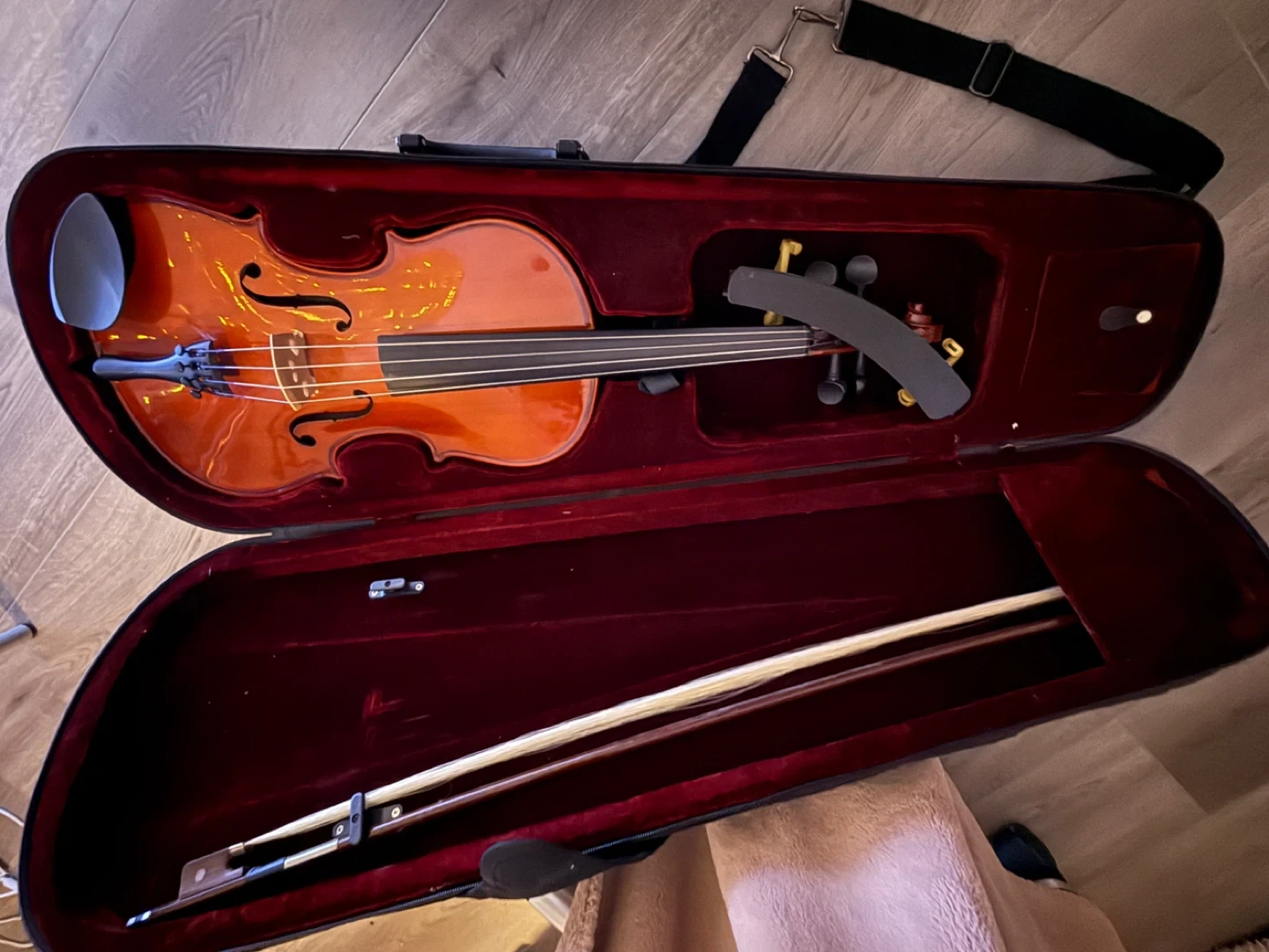 Selling a viola that comes with its case, bow, and a Kun shoulder rest. It also includes a box of rosin. Great for students or anyone looking to learn!