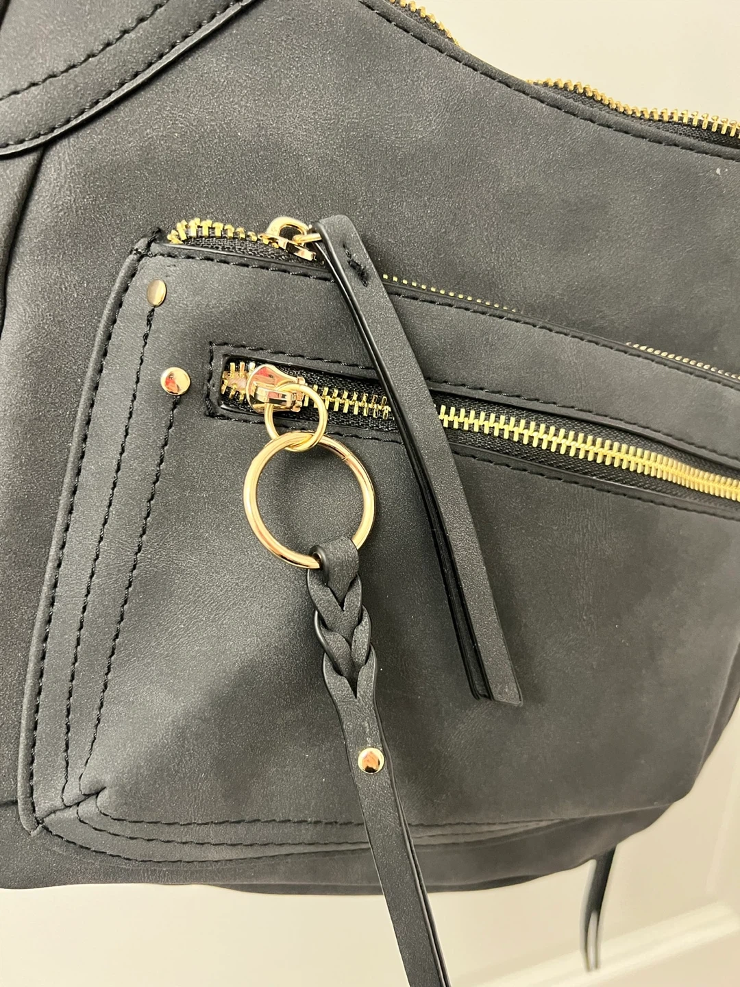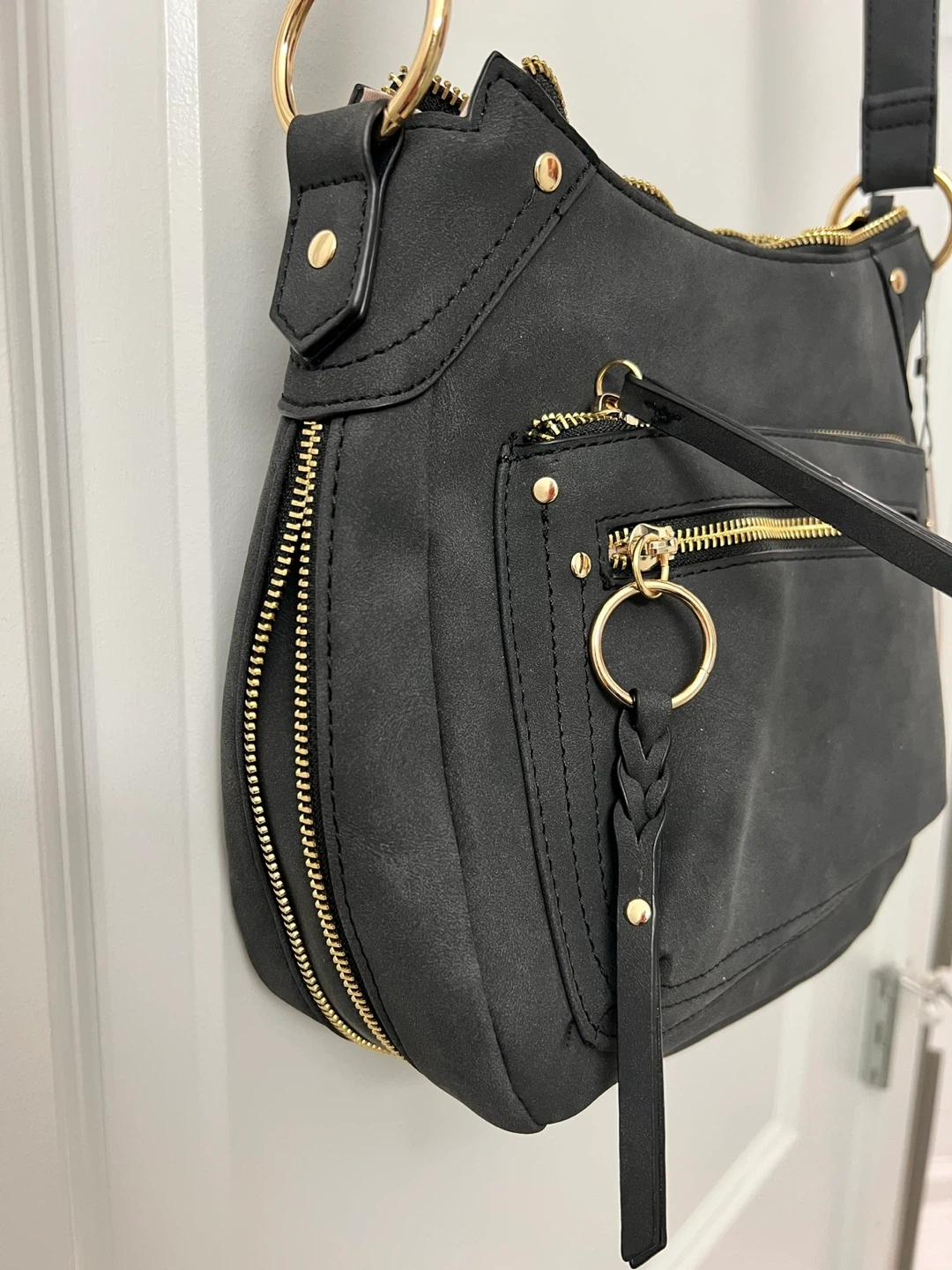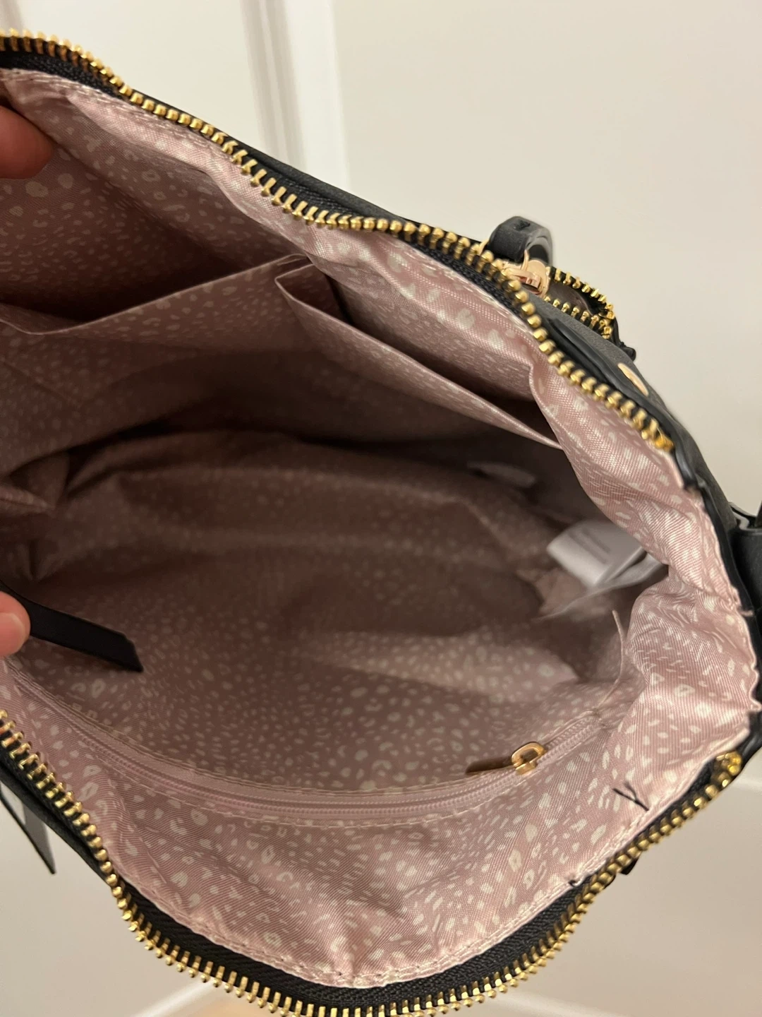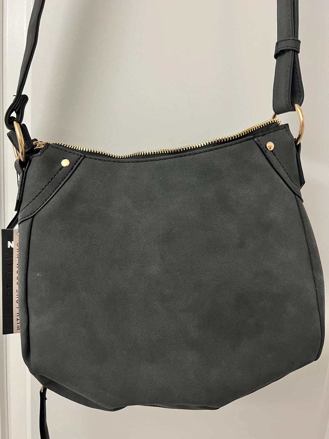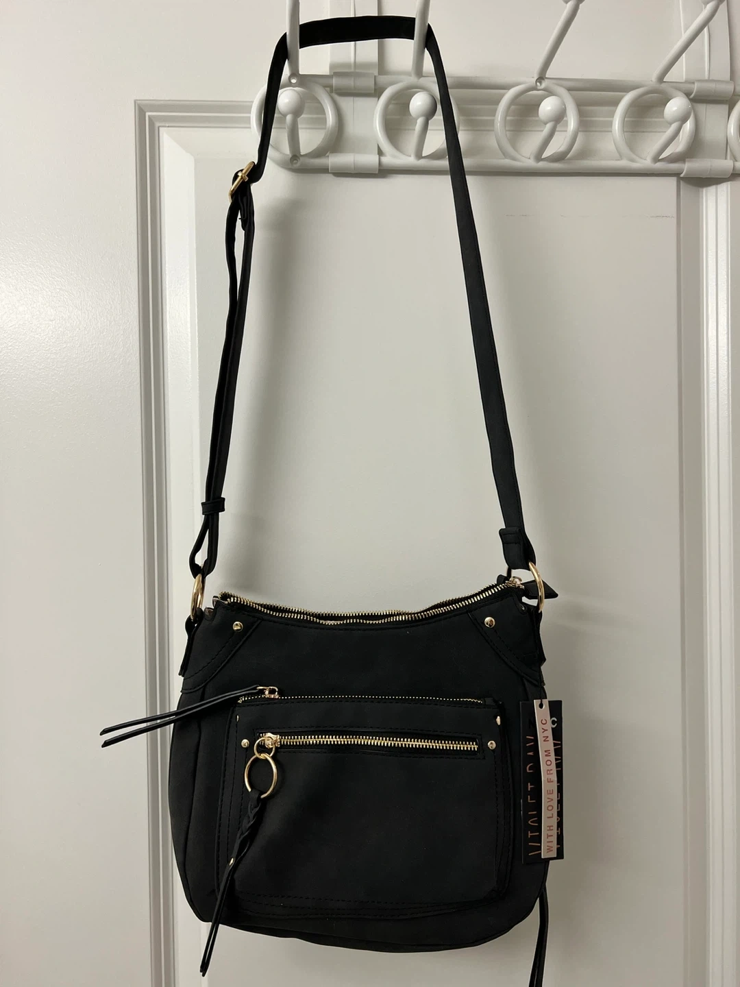 This Violet Ray NYC crossbody bag is brand new with tags! It's a stylish black colour and features gold hardware. The tag shows the MSRP was $60. It's a great size for everyday use, with a convenient front pocket and zipper details. This bag has never been used, looking for a new home :)