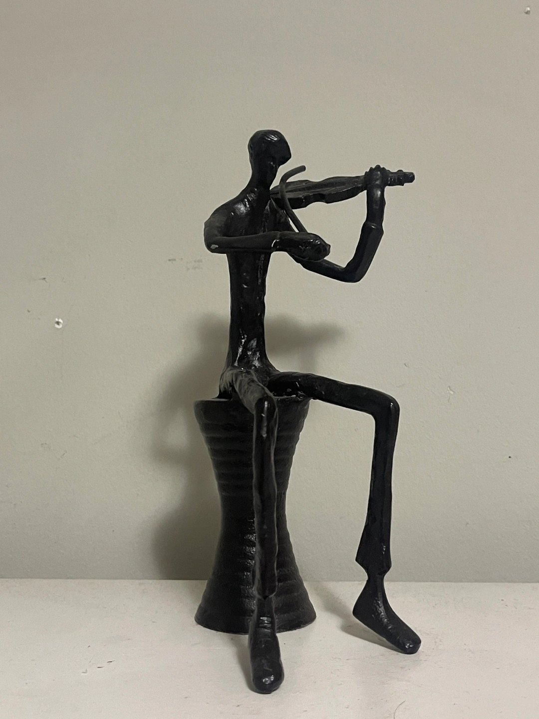 Selling a unique black sculpture of a violinist! This figurine would make a great addition to any home decor. It's in great condition and ready for a new home