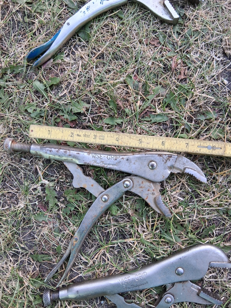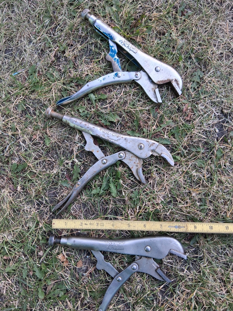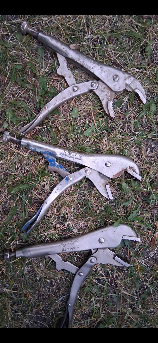 Selling a set of Vise-Grip "The Original" locking pliers. They show some signs of use and wear, but are still functional for various tasks. The set includes three different sizes. Great for any toolbox! 3 sets take all 30$