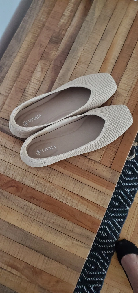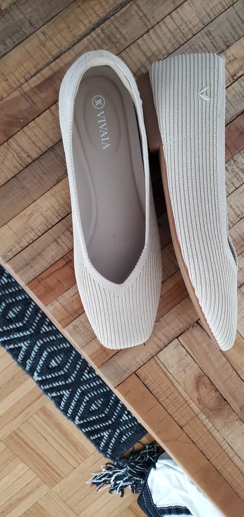 These VIVAIA flats are a stylish and comfortable addition to any wardrobe! They feature a modern square-toe design and are made with a beige knit material. The size is 38.5.