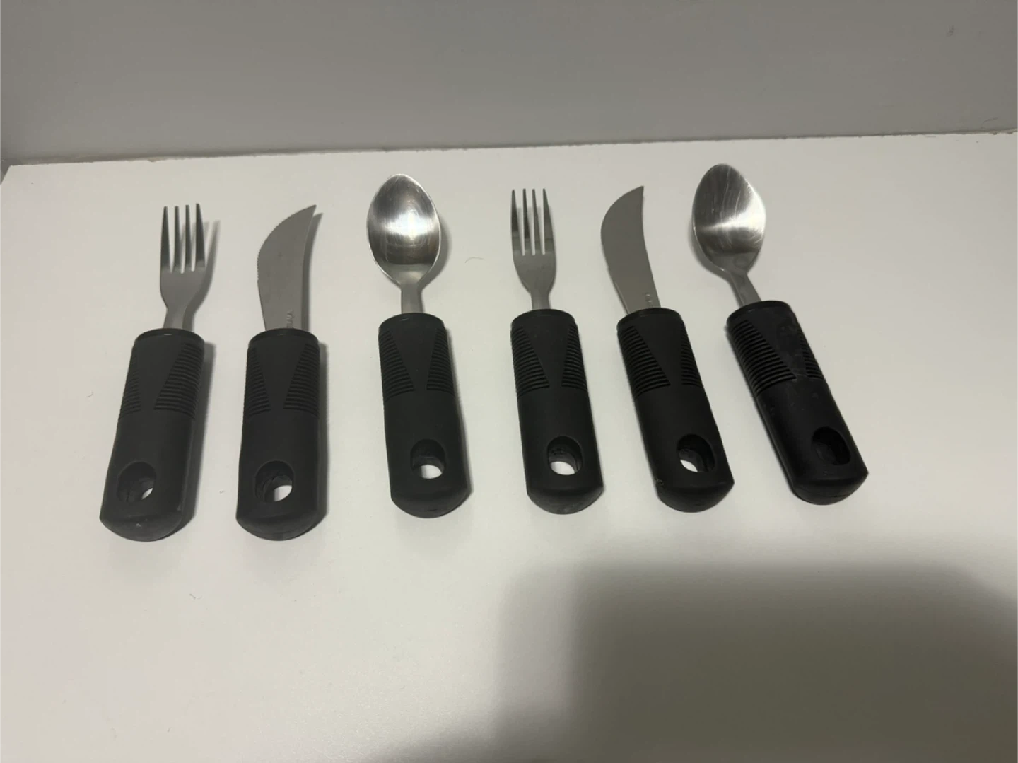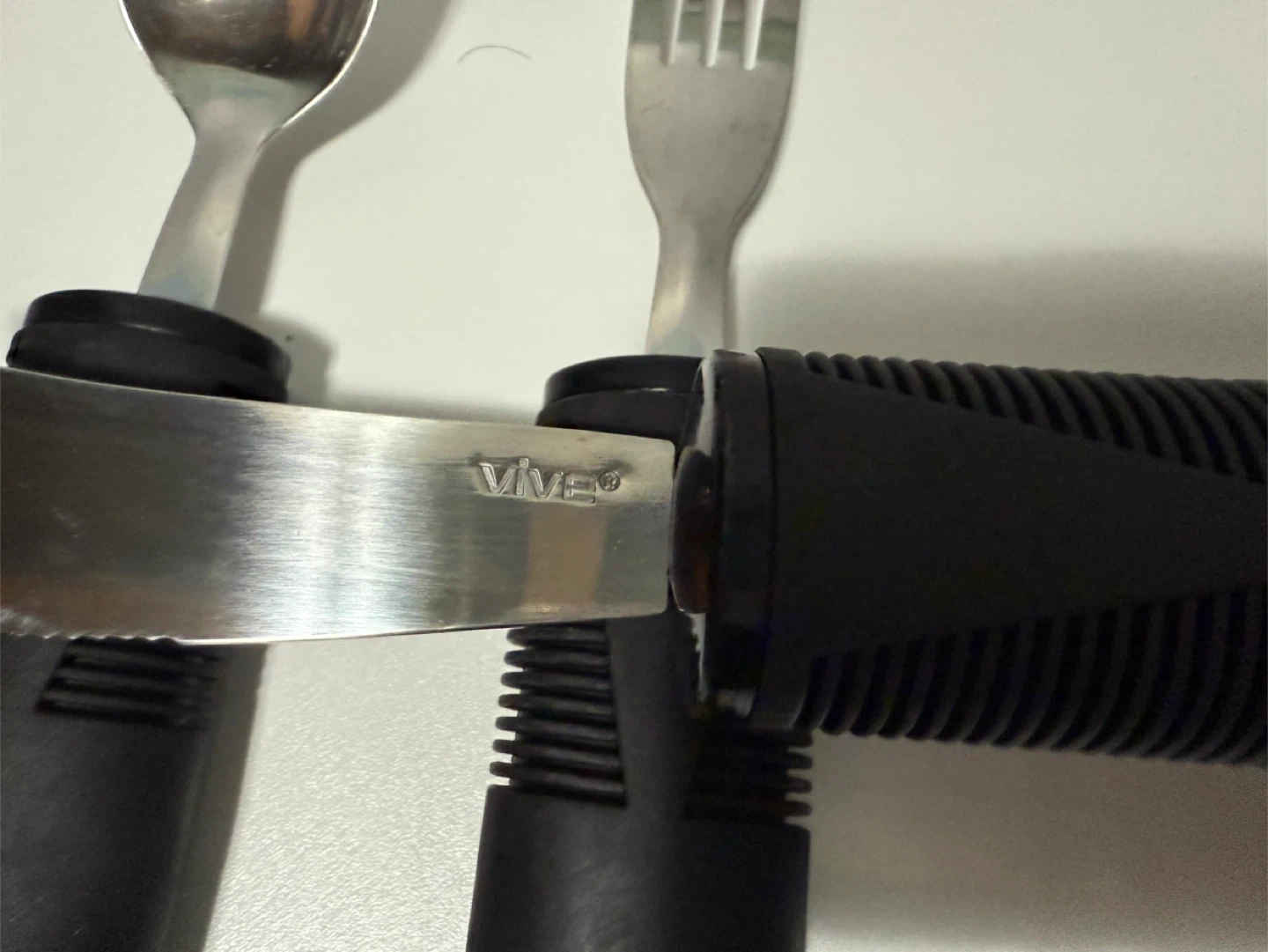 I'm selling a Vive adaptive utensil set, including forks, knives, and spoons. These utensils have a comfortable, non-slip grip, making them ideal for anyone with limited hand strength or mobility. They're in great condition!