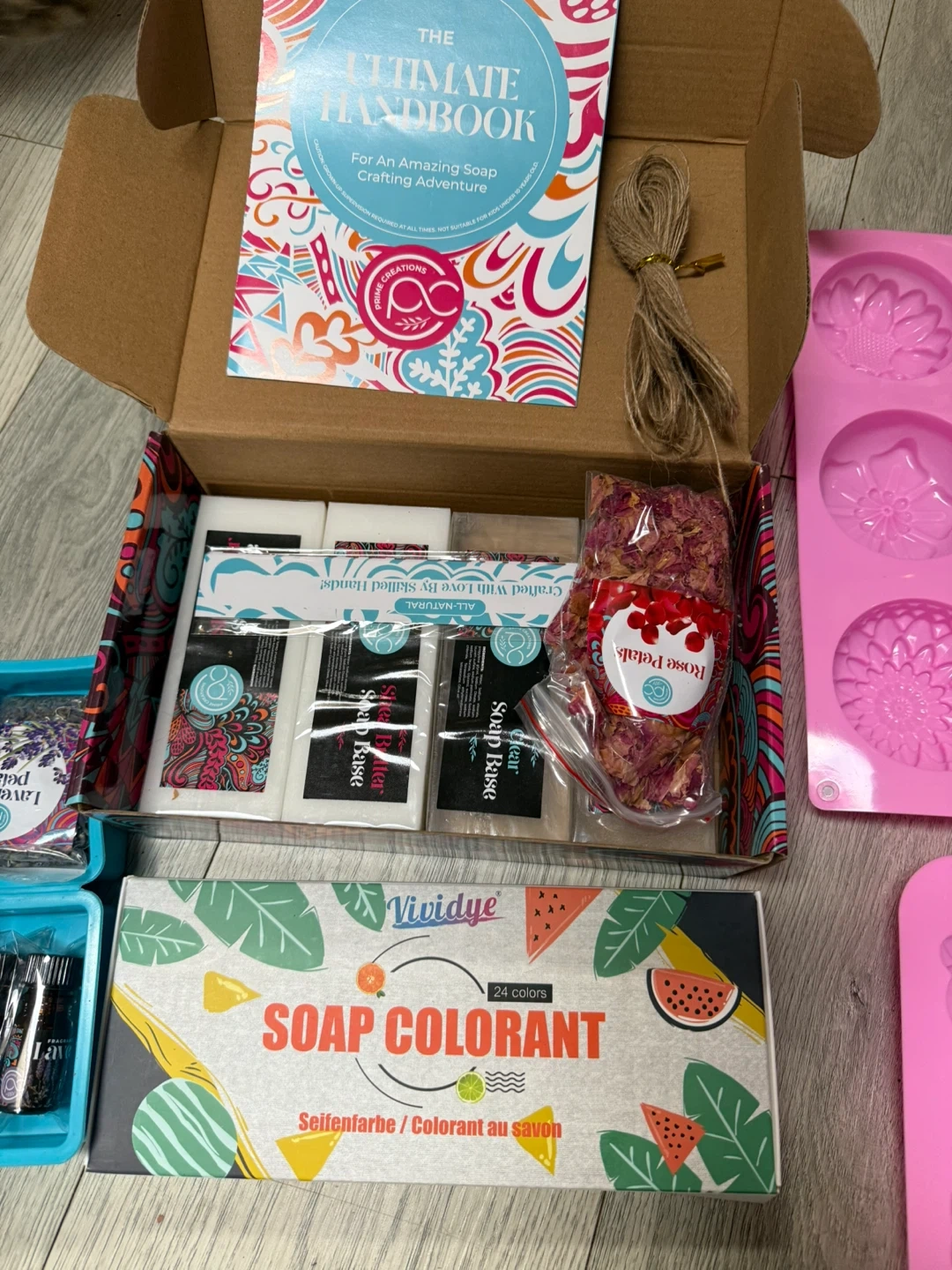 Get creative with this Vividye Artisan Soap Crafting Set! It comes with soap colorant, molds, and everything you need to make beautiful, handcrafted soaps. The set includes various fragrance oils, dried lavender petals, and rose petals to add a personal touch to your creations. Perfect for a fun DIY project or a thoughtful gift!
