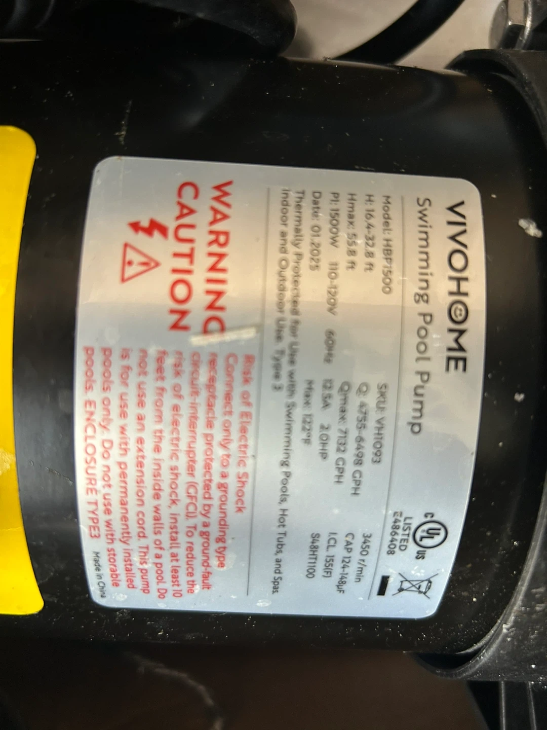 I'm selling a brand new VIVOHOME HBF500 swimming pool pump, still in its original box! This pump is thermally protected for use with swimming pools, hot tubs, and spas, and is suitable for both indoor and outdoor use. It operates on 110-120V and has a flow rate of 4755-6698 GPH. It's a 2.0HP pump with a max head of 42.8 ft. Comes with all original components and instructions