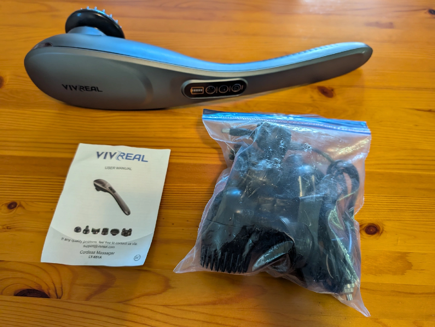 Selling a Vivreal cordless massager in great condition! It comes with multiple attachments and a user manual. It has 6 speeds and 6 modes to choose from for a customized massage experience. Perfect for relaxing those tense muscles after a long day!
