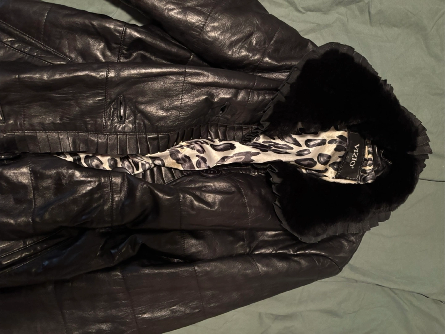 Selling a VIZIO black leather jacket. The interior lining has a fun animal print. Perfect for adding a bit of edge to your wardrobe ❗️🌼 please check my other listings, you might find something interesting to buy and make the best of your time.