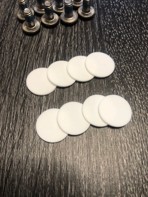 VOILE SPLITBOARD DIY SPLIT KIT PUCKS **BRAND NEW, Never used** These are the Voile DIY Split Kit Pucks (4) with 2-hole secure t-nut mounting. The pucks hold the Slider Track in place and provide the bridge for the 2 splitboard halves. The Voile DIY Split Kit Pucks (4) include 8 M6 x 12mm truss-head screws, 8 M6 round bottom t-nuts, and 8 Petex discs to mount to the board half. You will need to have a split kit puck sticker template to determine the mounting position for your proper angles and stance width.