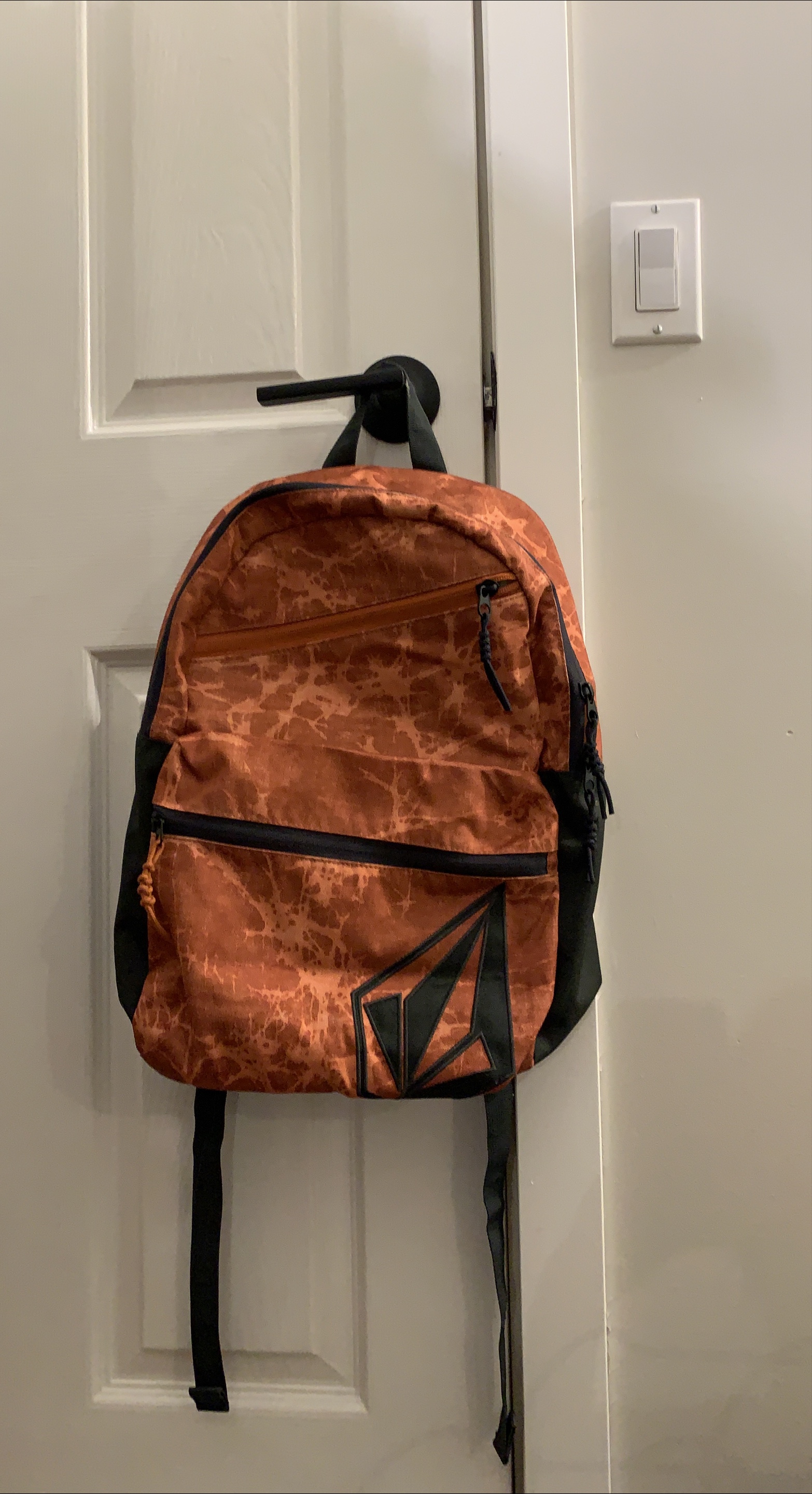 This is a Volcom backpack in a cool orange and black colour scheme. It has a laptop compartment and two more front pockets . It's in great shape and ready for a new owner!