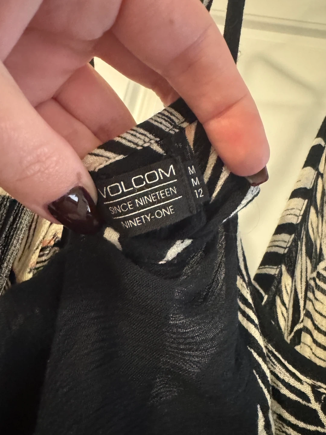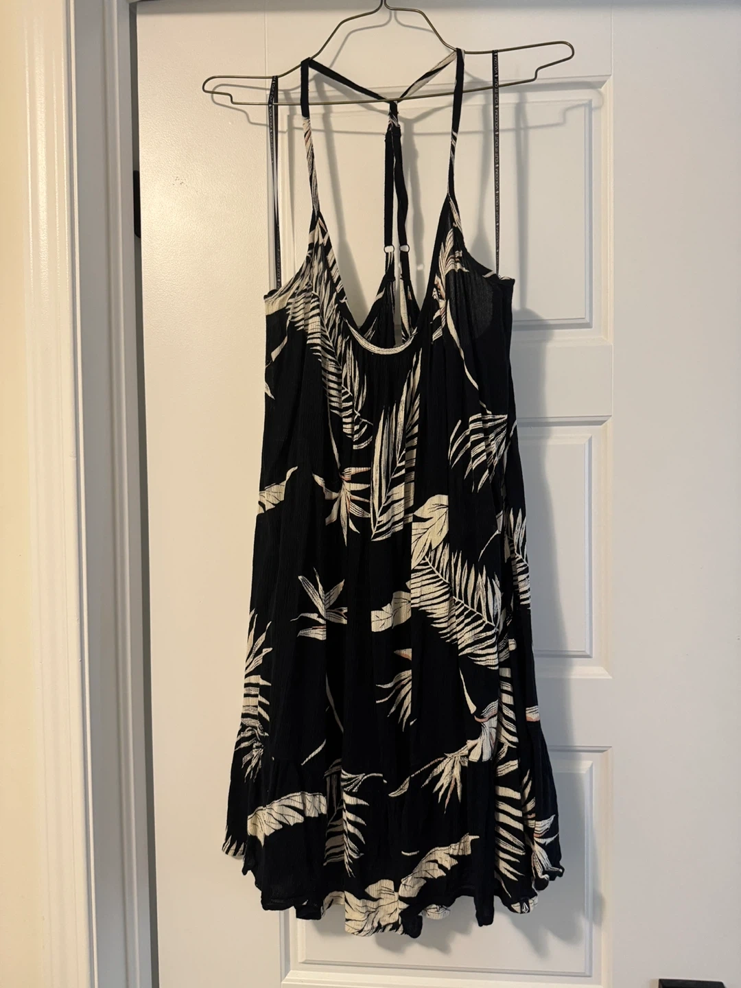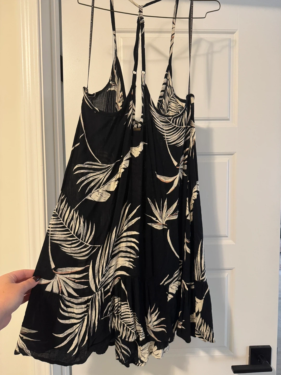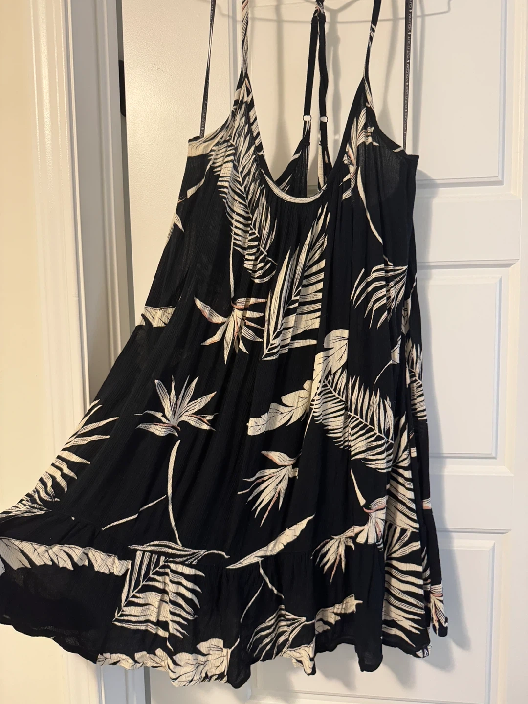 Cute Volcom dress in a black and white leaf print! Size medium, perfect for summer days or a night out. The material is lightweight and flowy, making it super comfortable