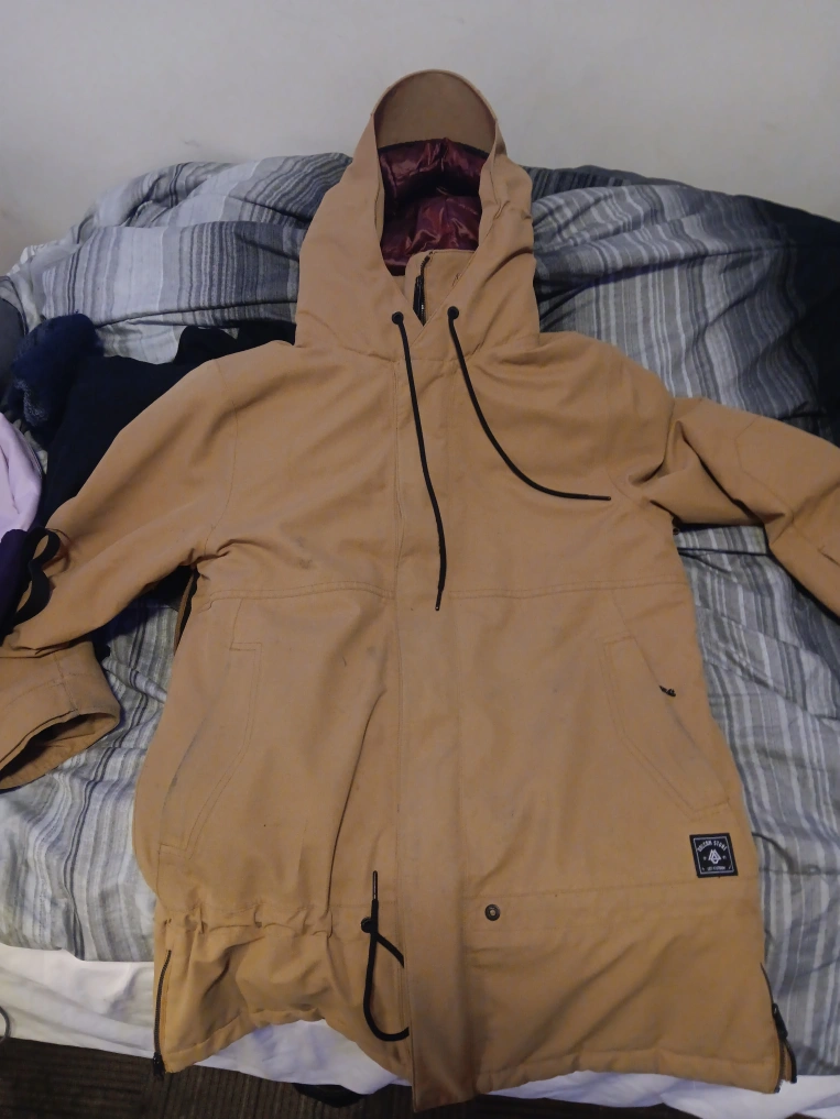 Selling a Volcom men's winter jacket! It's a stylish tan colour and perfect for keeping warm during the cold months. It has a hood and a comfortable fit. Feel free to message me if you're interested! selling for 100$